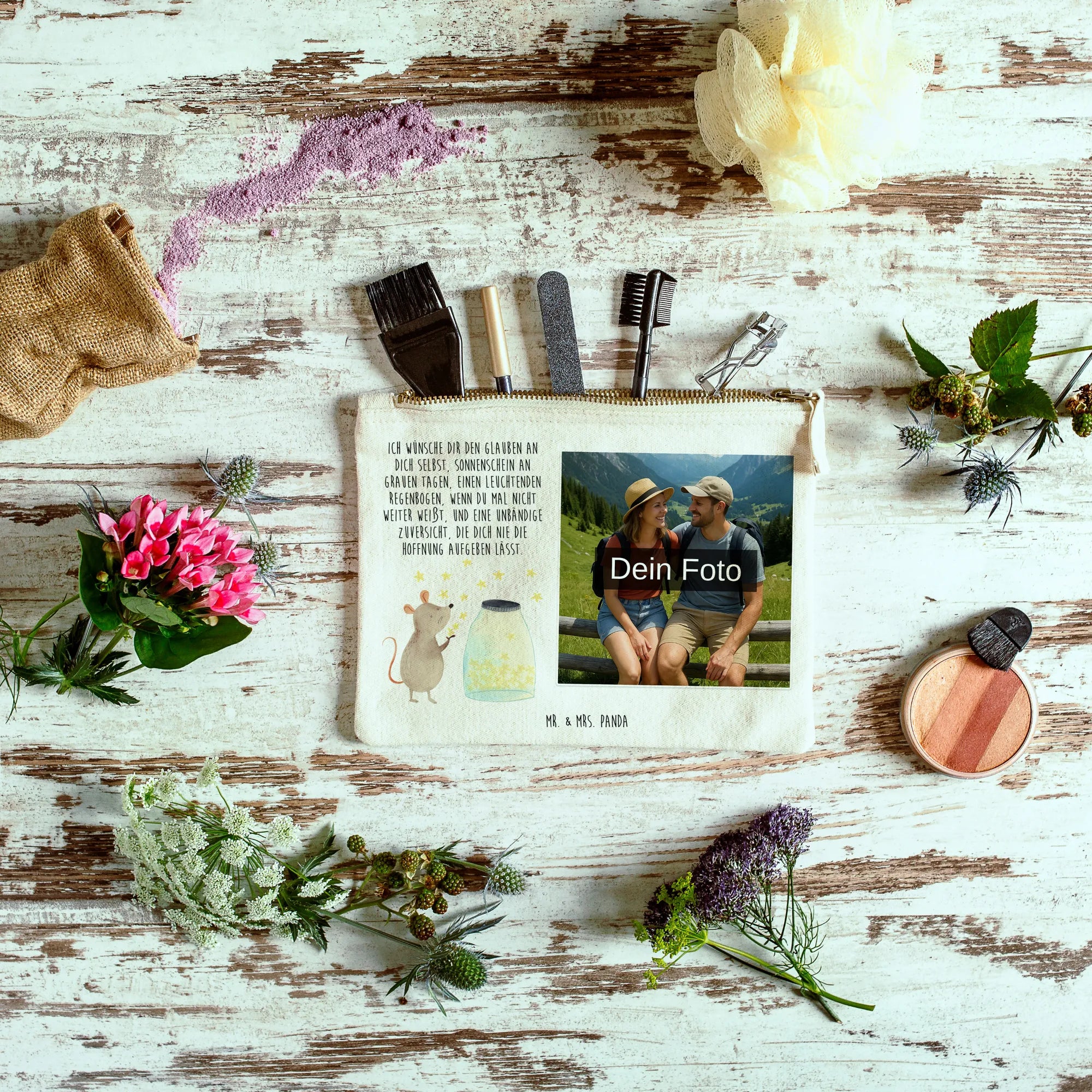 Gestalte deine persönliche Foto Schminktasche von Mr. & Mrs. Panda und lasse deinen individuellen Stil strahlen! Diese praktische Tasche, gefertigt aus 100% weicher Baumwolle, ist in den Größen 20 x 15 cm, 25 x 20 cm und 30 x 25 cm erhältlich. Nutze die Gelegenheit, dein Lieblingsfoto hochzuladen und sorge dafür, dass deine Schminkutensilien stilvoll verstaut sind. Die entzückenden Drucke mit witzigen Sprüchen bringen Freude in deinen Alltag. Ob für Kosmetikartikel, als Stiftemäppchen oder für wichtige Dokumente – diese Tasche ist vielseitig einsetzbar. Dank der umsäumten und eingeschlagenen Innennähte bleibt sie stets in Form. Pflege sie einfach mit lauwarmer Handwäsche, und sie wird dir lange Freude bereiten!