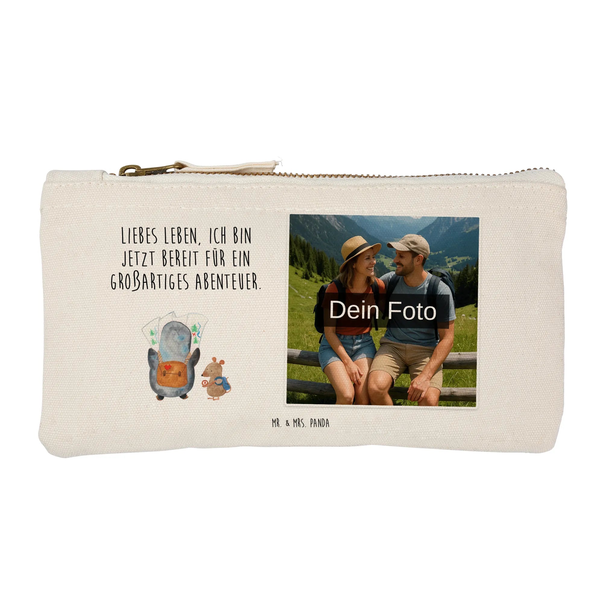 Personalisierte Foto Schminktasche Pinguin & Maus Wanderer - Größe S Klein