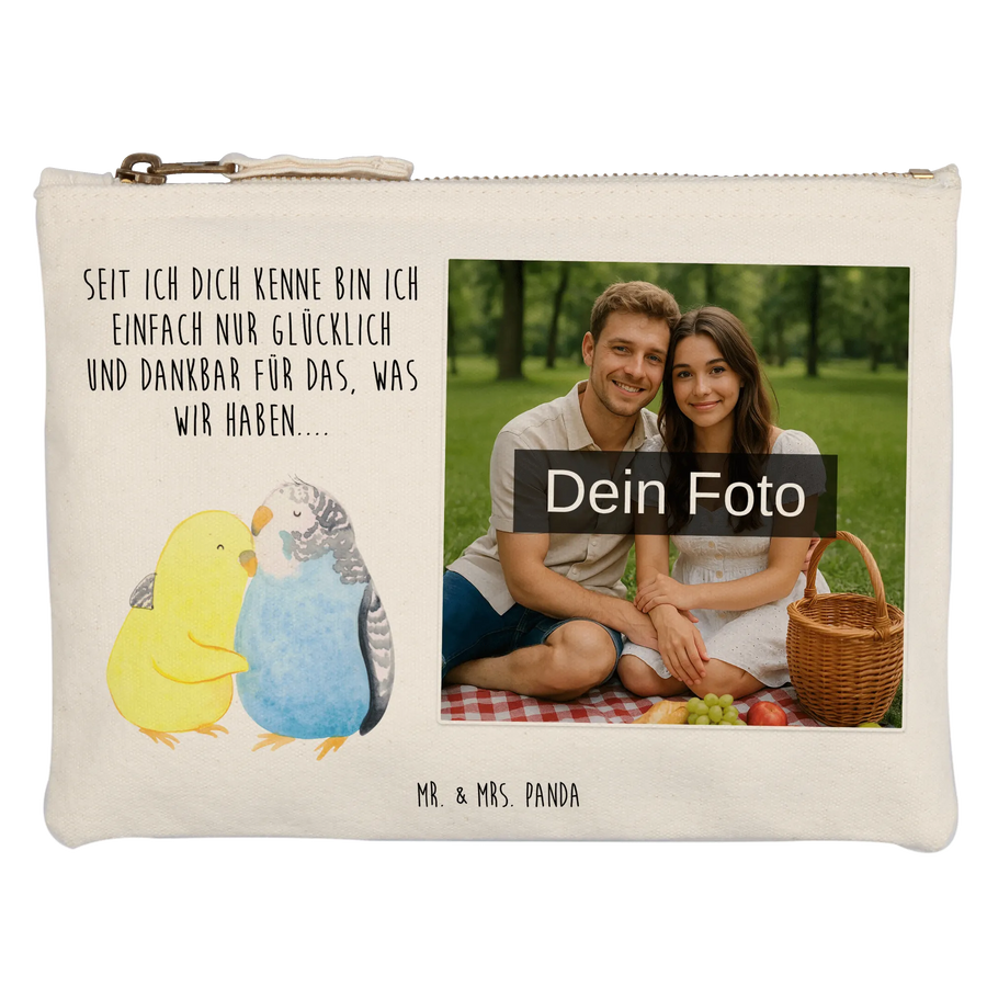 Personalisierte Foto Schminktasche Wellensittich Liebe – Mr. & Mrs. Panda