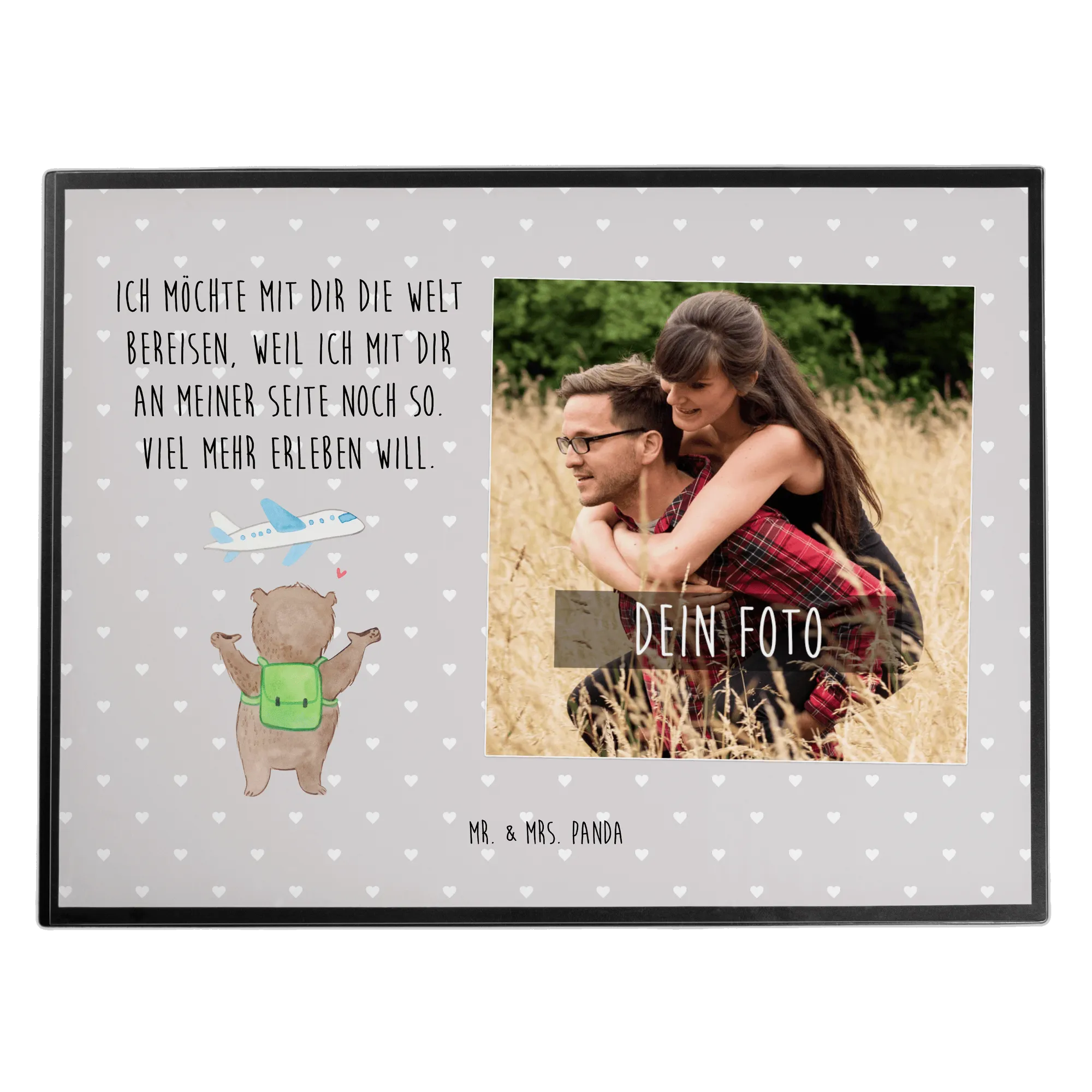 Die personalisierte Foto Schreibtischunterlage 'Bär Flugzeug' von Mr. & Mrs. Panda ist das perfekte Geschenk für Verliebte und ist ideal für den Valentinstag, Jahrestag oder Hochzeitstag.