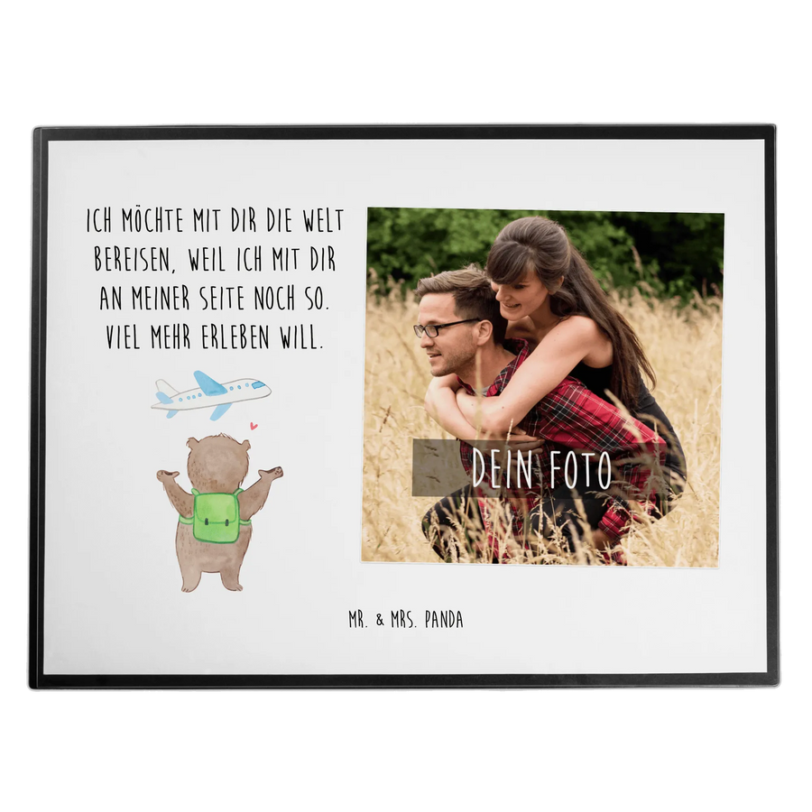 Die personalisierte Foto Schreibtischunterlage 'Bär Flugzeug' von Mr. & Mrs. Panda ist das perfekte Geschenk für Verliebte und ist ideal für den Valentinstag, Jahrestag oder Hochzeitstag.
