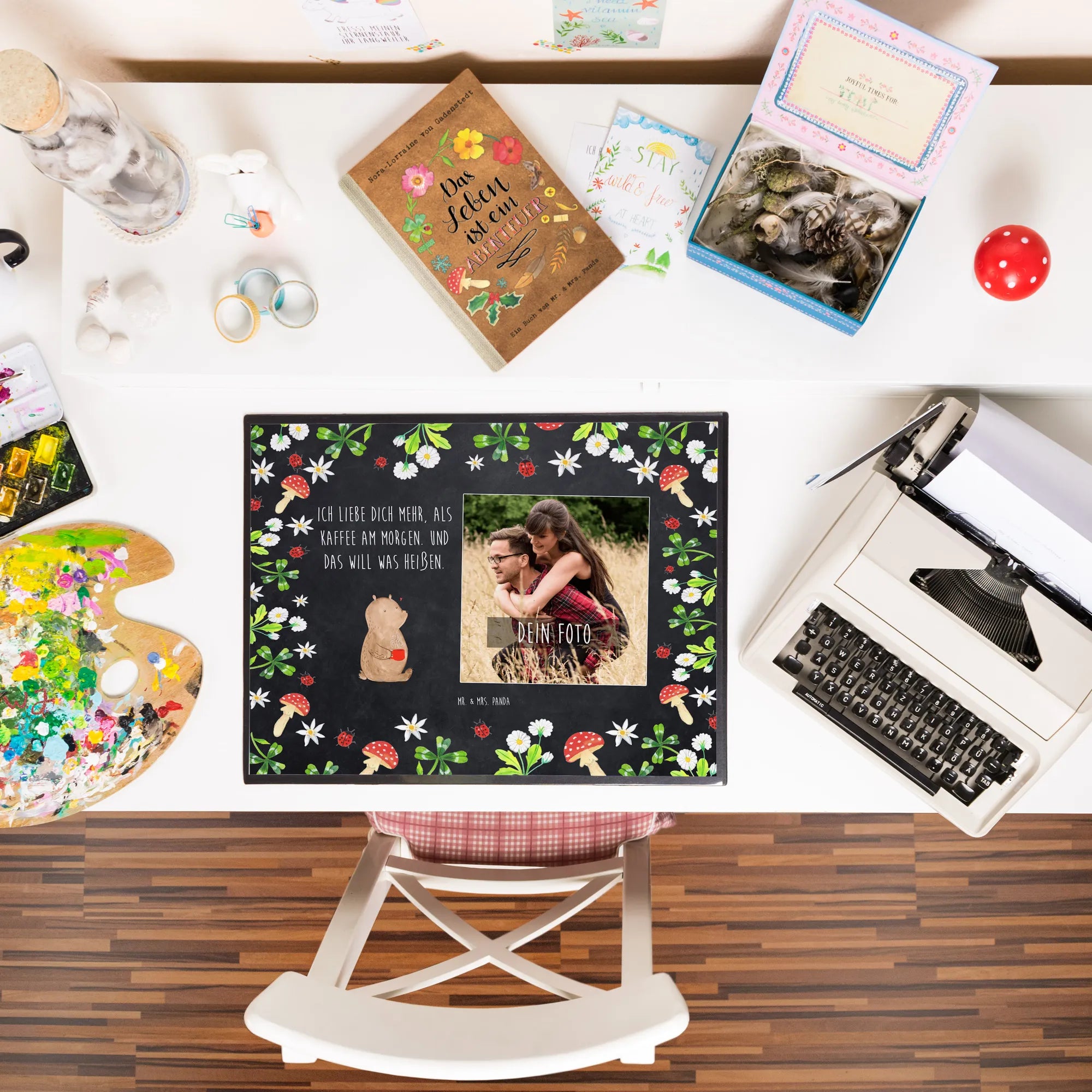 Gestalte jetzt deine persönliche Schreibtischunterlage und mache deinen Arbeitsplatz zu einem Ort voller Erinnerungen – Mr. & Mrs. Panda macht's möglich!