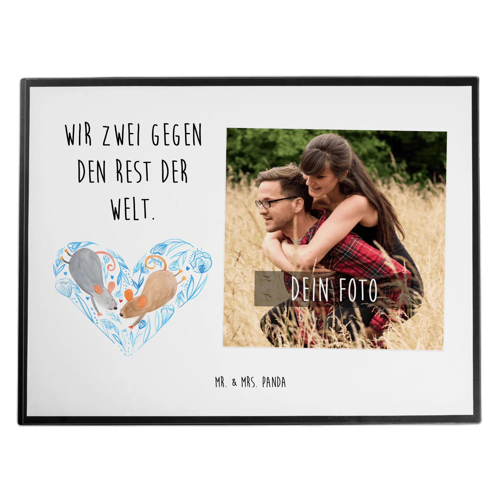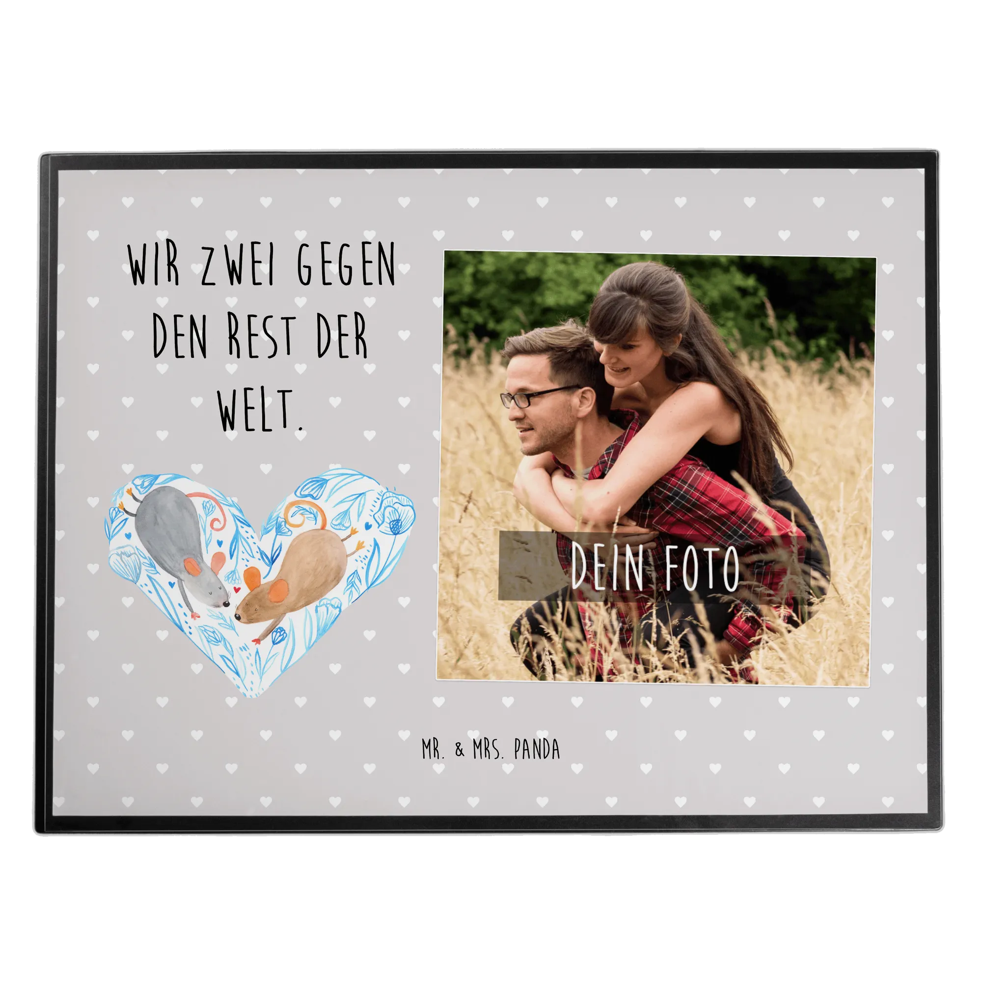 Die personalisierte Foto Schreibtischunterlage mit dem zauberhaften Motiv 'Mäuse Herz' von Mr. & Mrs. Panda ist das perfekte Geschenk für alle Verliebten! Ob zum Jahrestag, zur Verlobung oder als Hochzeitsgeschenk – diese Unterlage zaubert ein Lächeln auf die Gesichter deiner Liebsten.