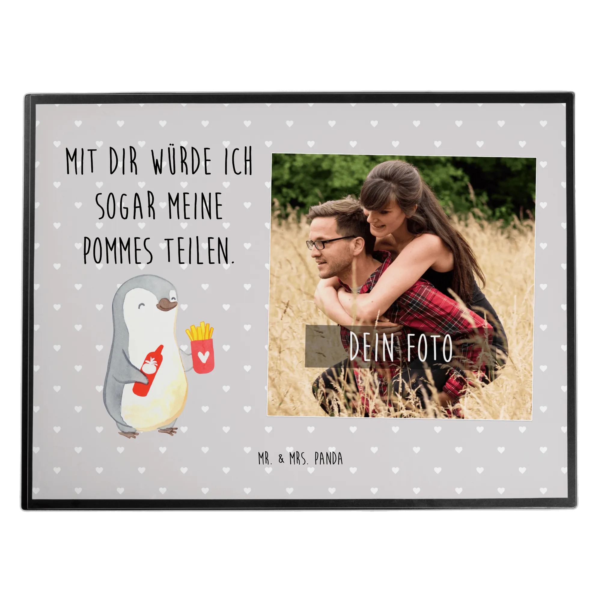 Die personalisierte Foto Schreibtischunterlage von Mr. & Mrs. Panda ist das perfekte Geschenk für all jene, die ihren Arbeitsplatz mit Liebe und Persönlichkeit ausstatten möchten. Mit dem herrlichen Motiv "Pinguin Pommes" und dem liebevollen Spruch "Mit dir würde ich sogar meine Pommes teilen" ist diese Unterlage nicht nur ein praktischer Schreibtischschutz, sondern auch ein Herzstück voller Emotionen.