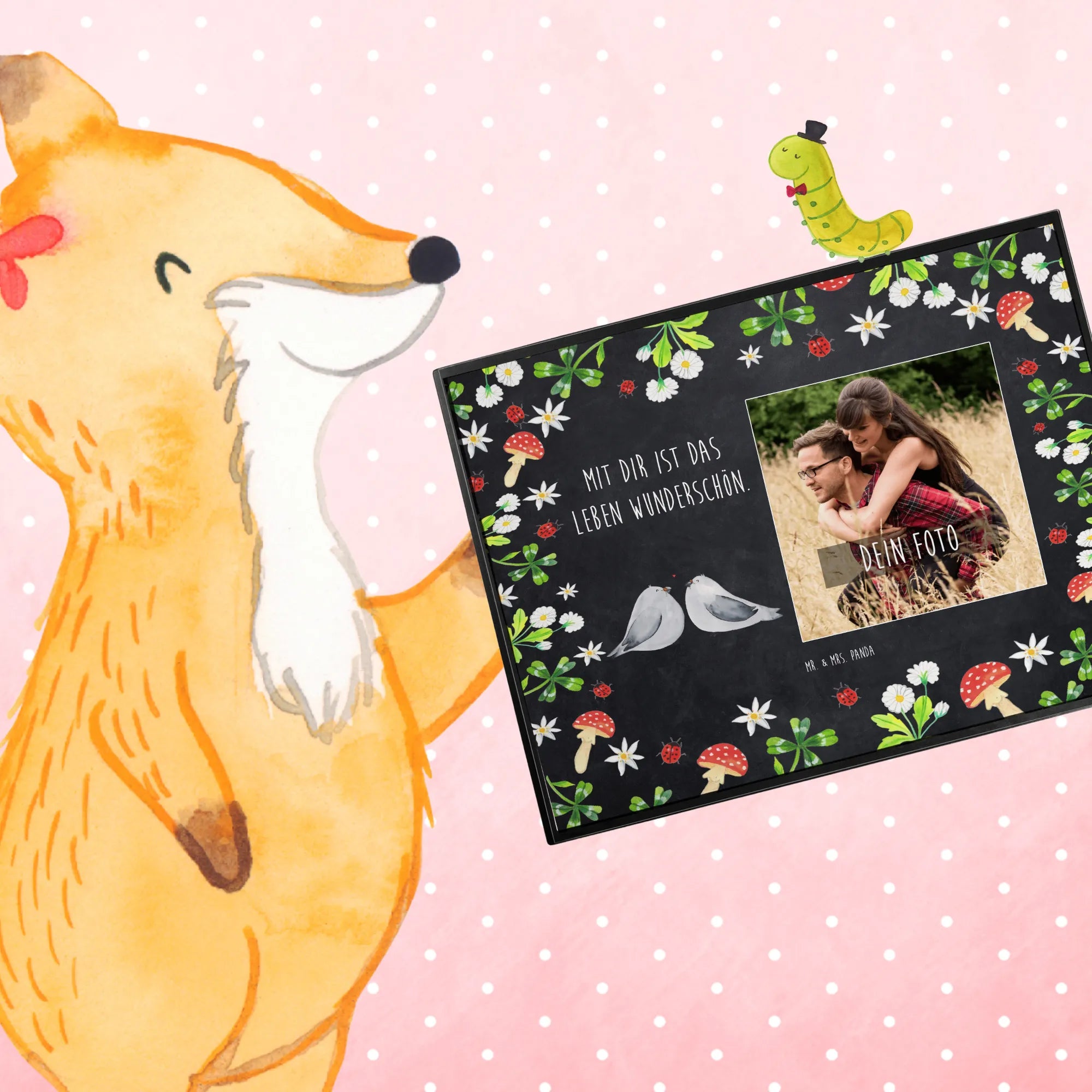 Gestalte deine Schreibtischunterlage, um deinen Arbeitsplatz mit deinen Erinnerungen zu bereichern – es ist ganz einfach mit Mr. & Mrs. Panda!
