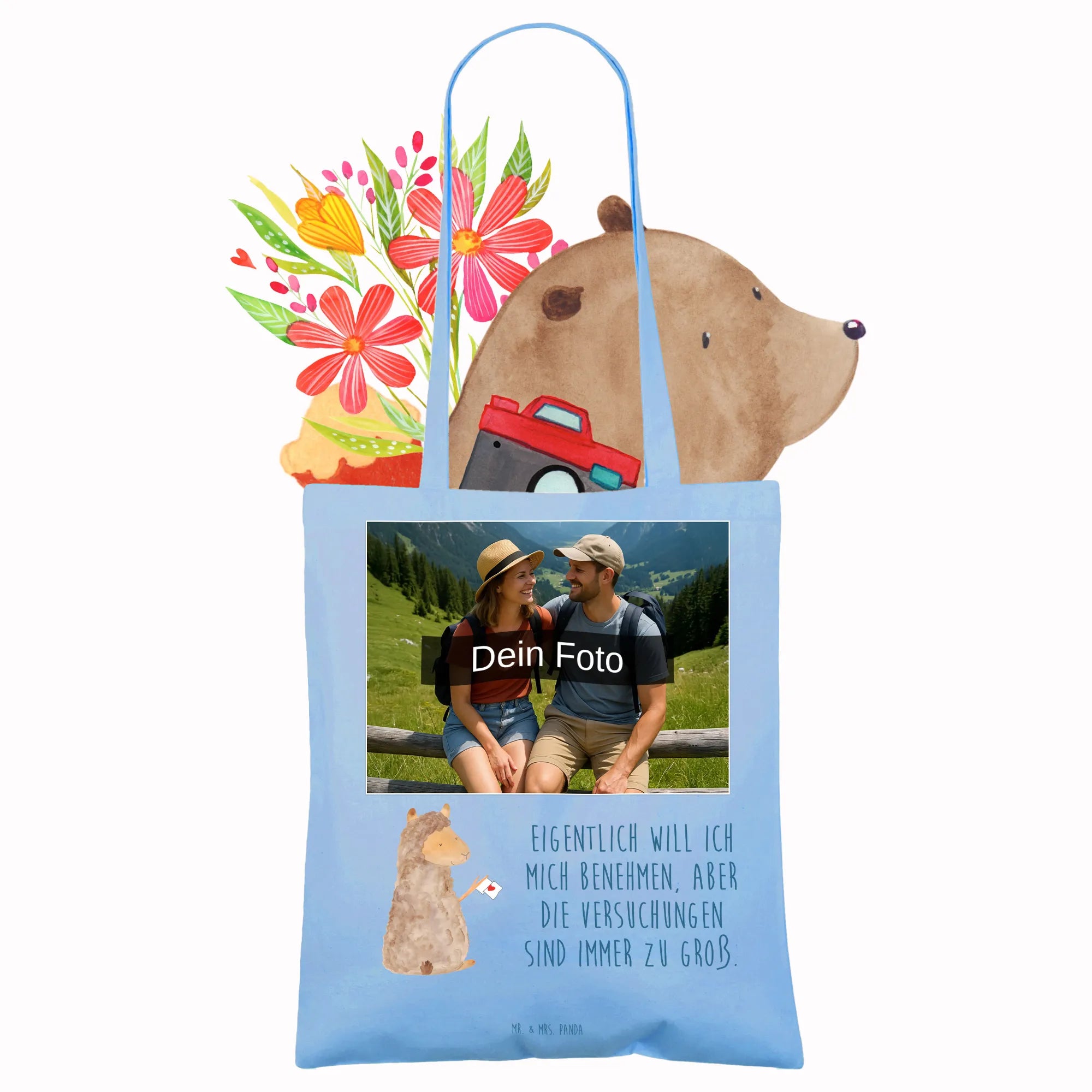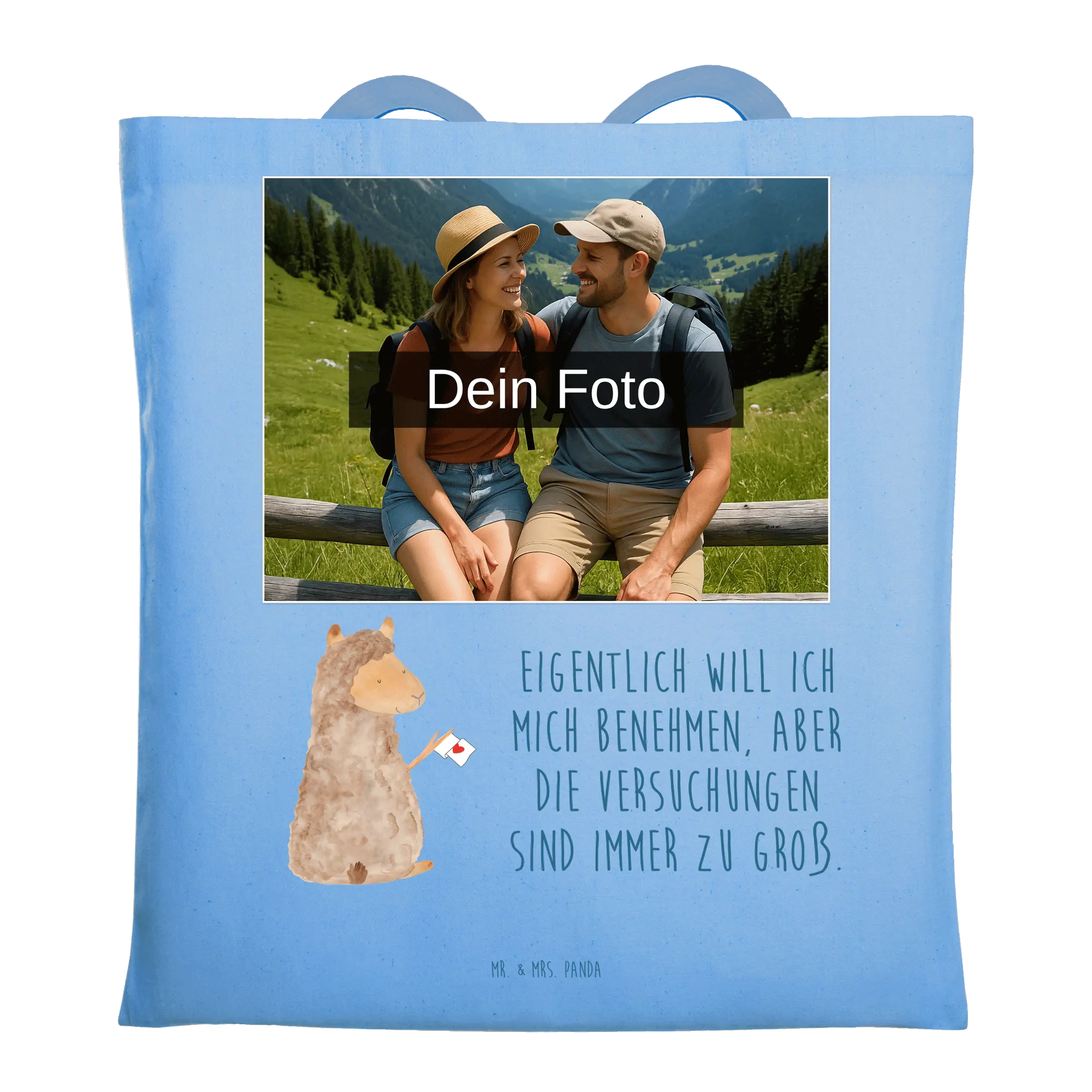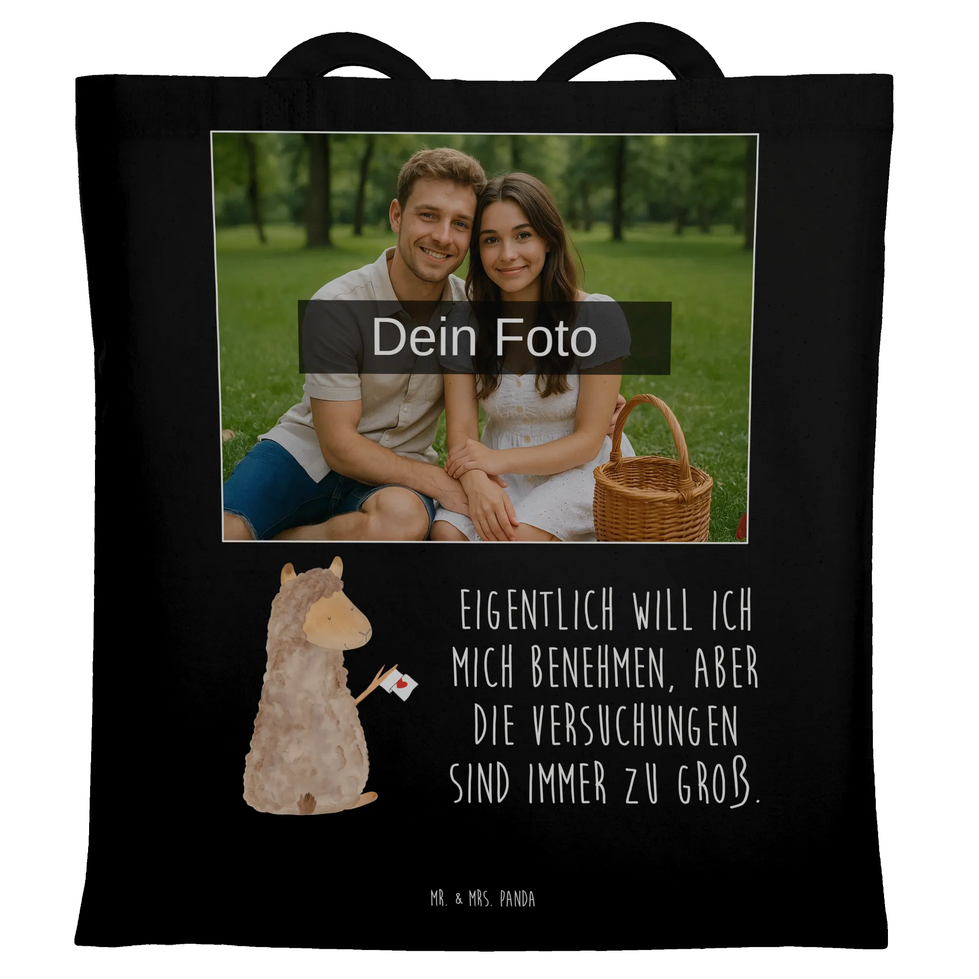 Personalisierte Foto Tragetasche Alpaka Fahne – Mr. & Mrs. Panda