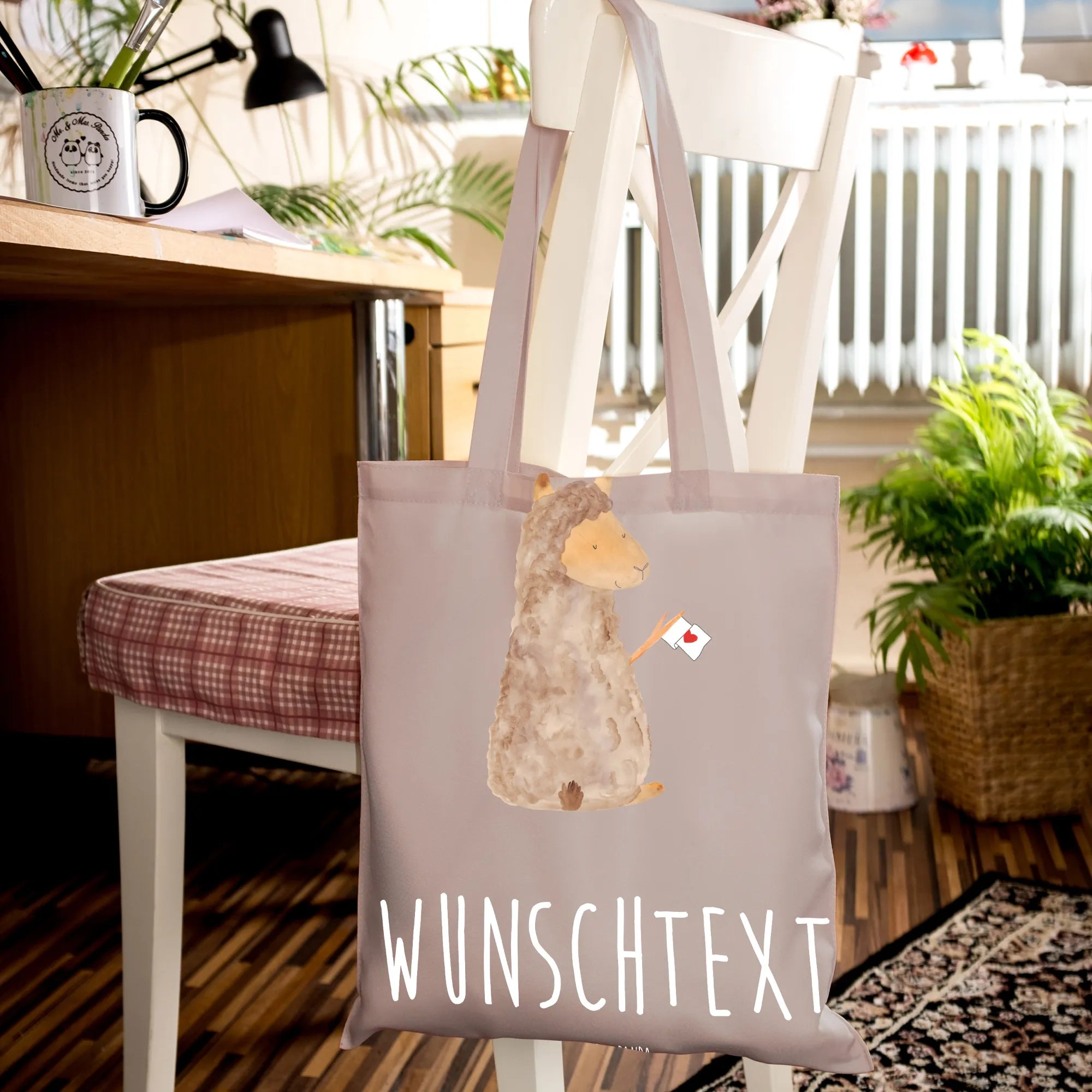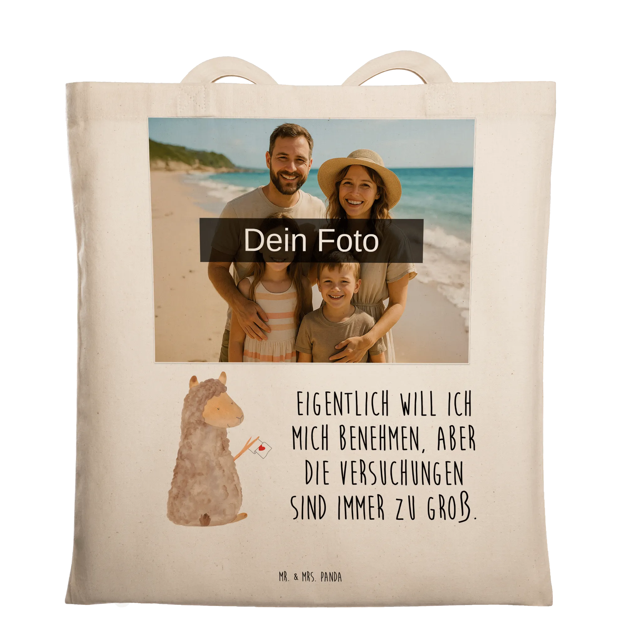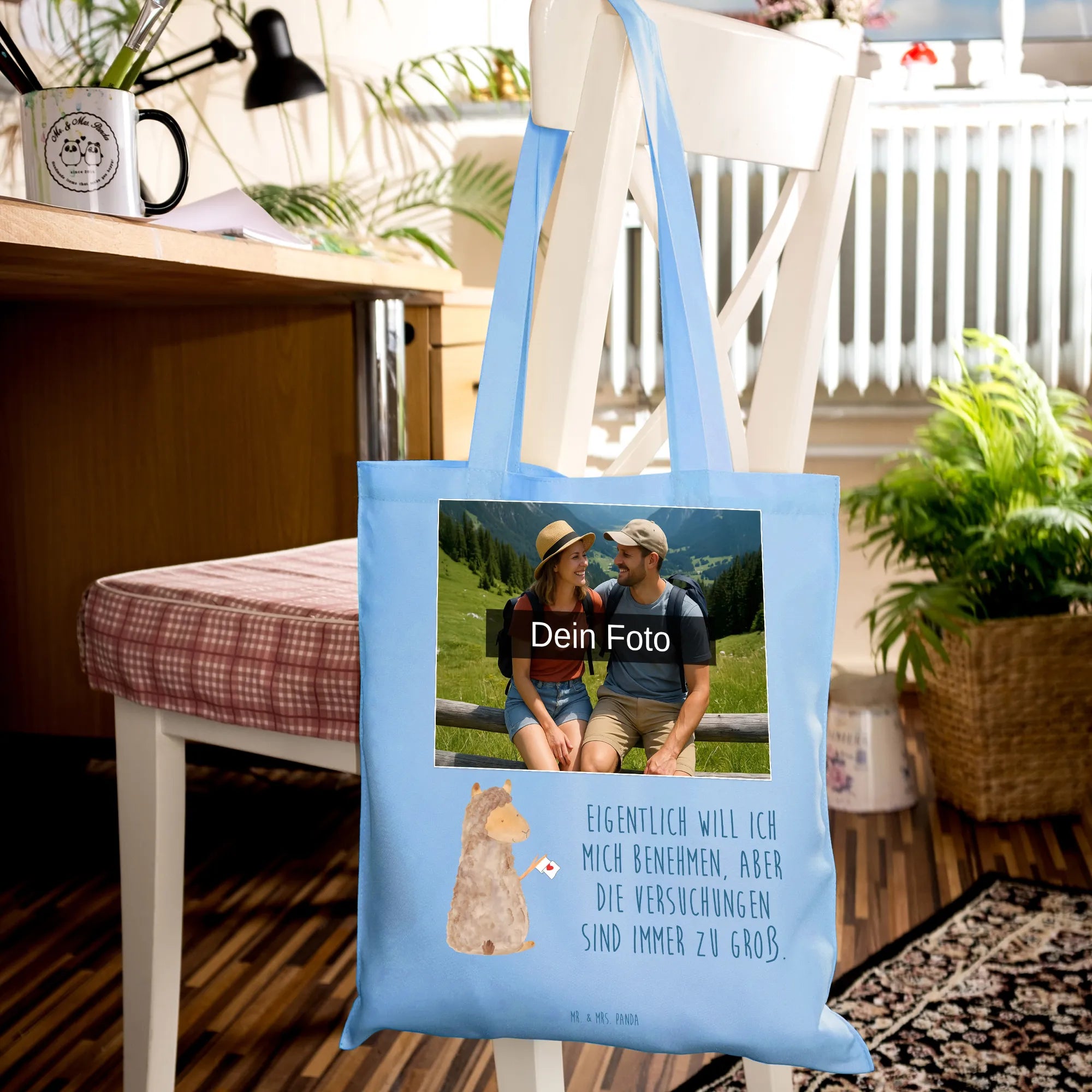 Personalisierte Foto Tragetasche Alpaka Fahne – Mr. & Mrs. Panda