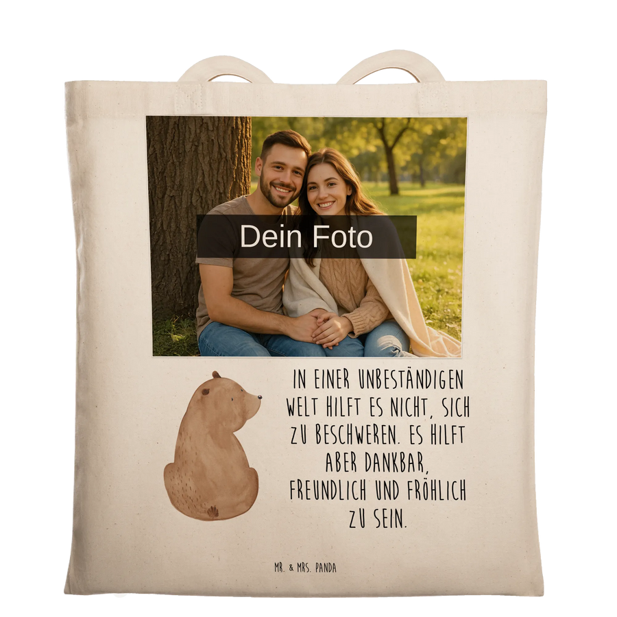Personalisierte Foto Tragetasche Bär Schulterblick - Transparent