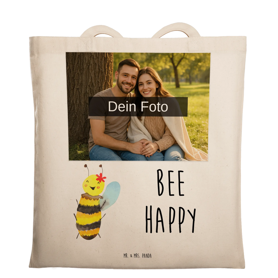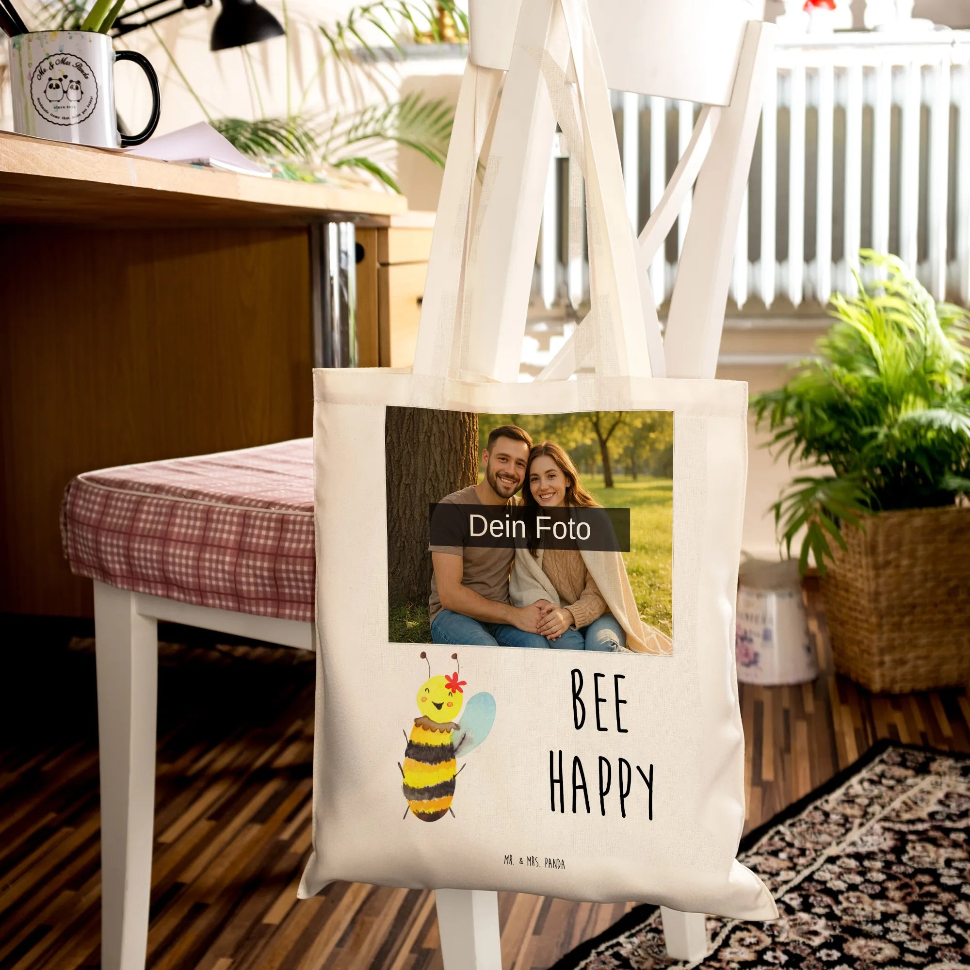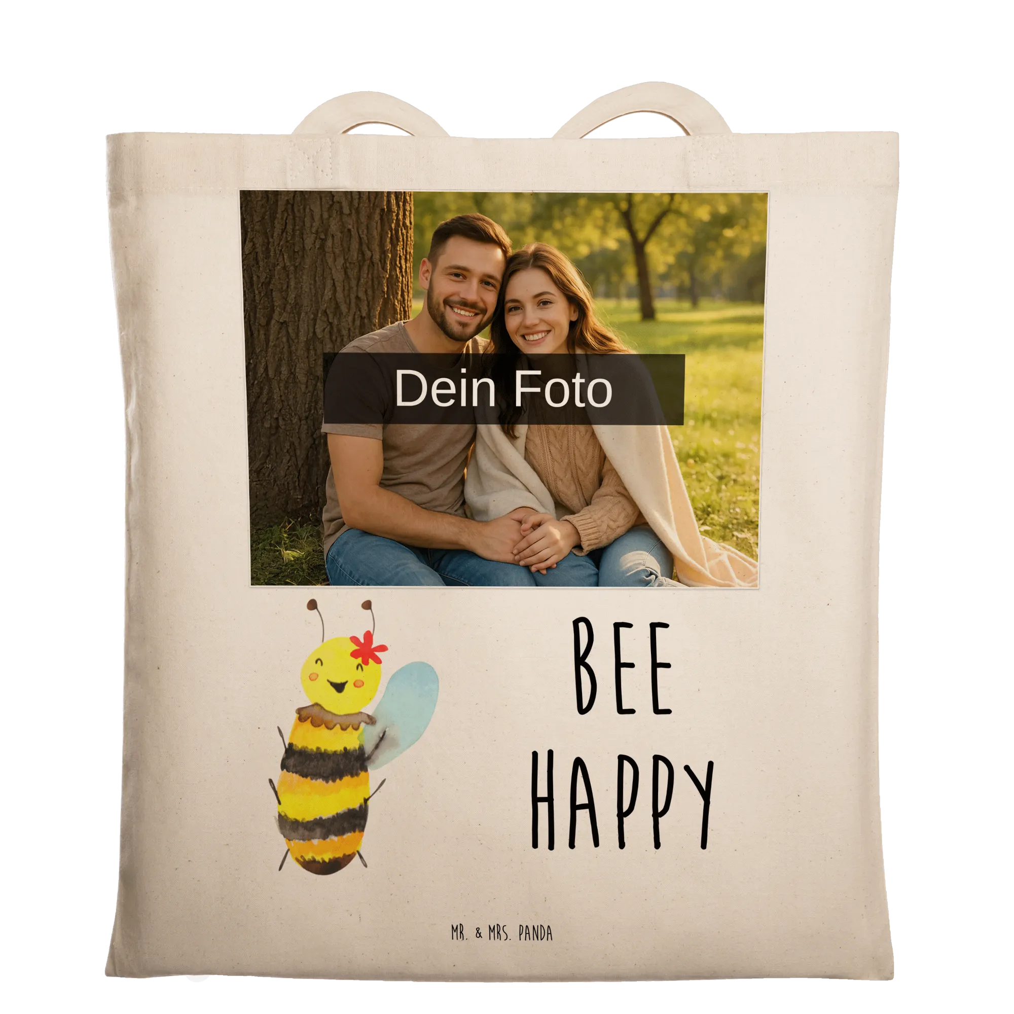 Personalisierte Foto Tragetasche Biene Happy - Transparent