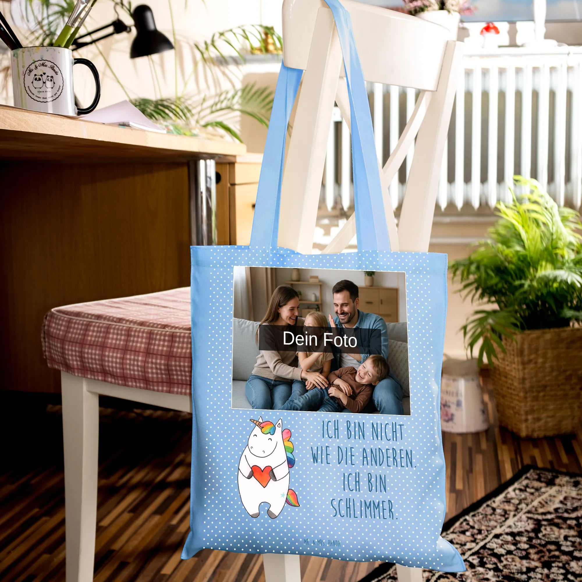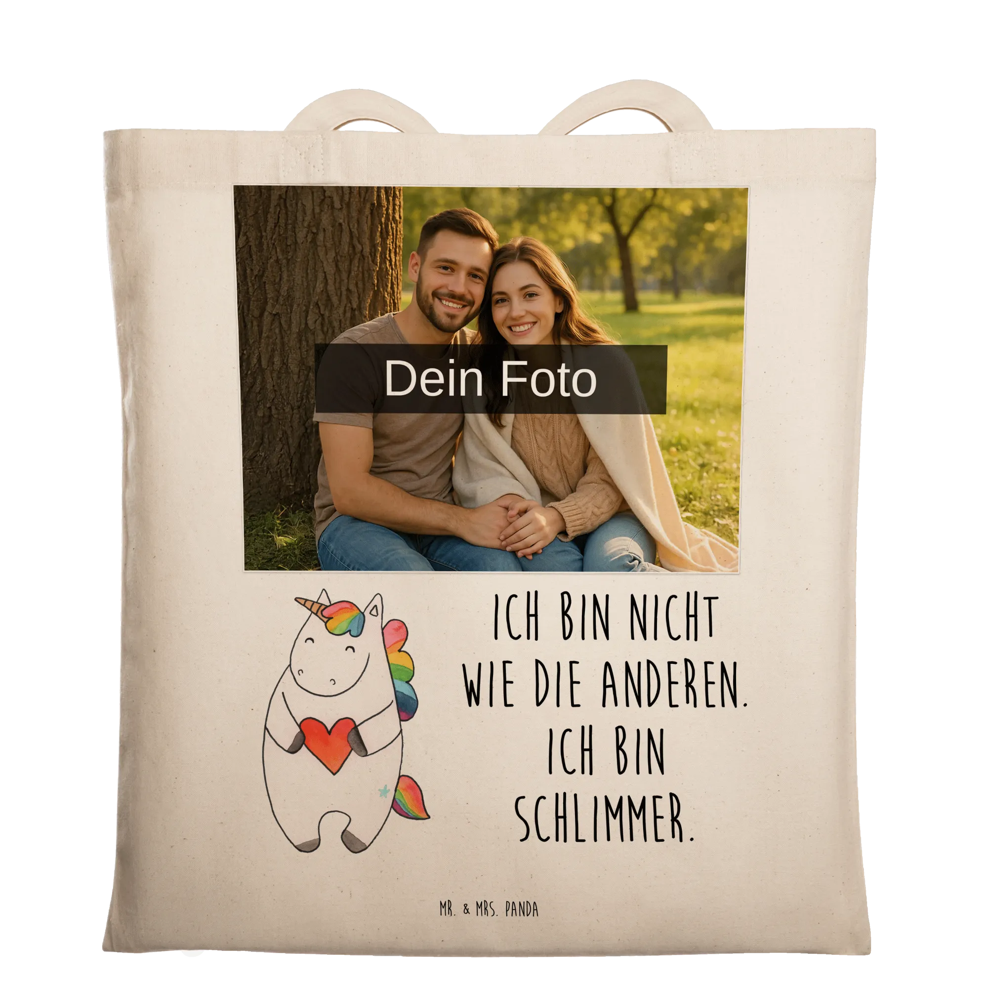 Personalisierte Foto Tragetasche Einhorn Herz – Mr. & Mrs. Panda