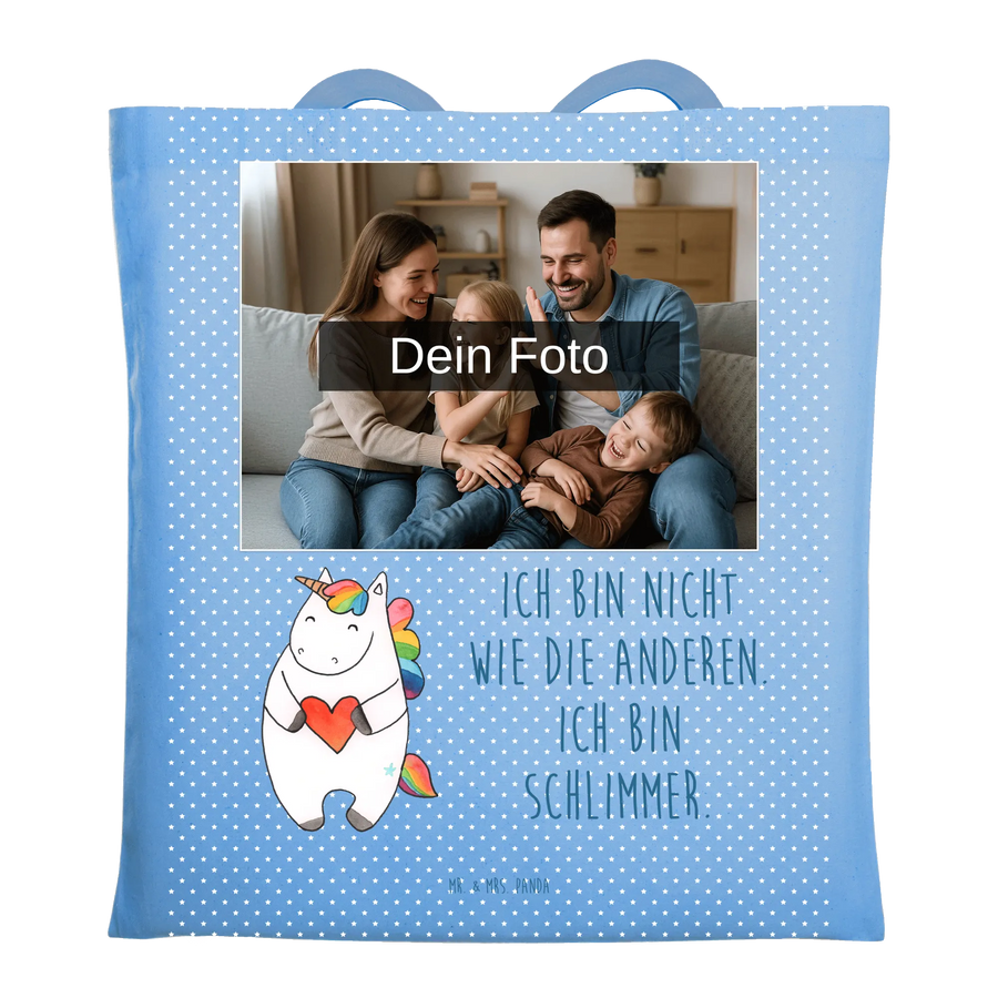 Personalisierte Foto Tragetasche Einhorn Herz - Sky Blue