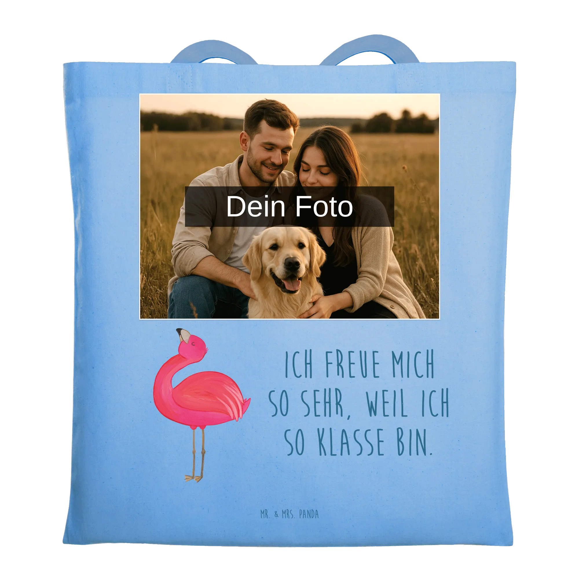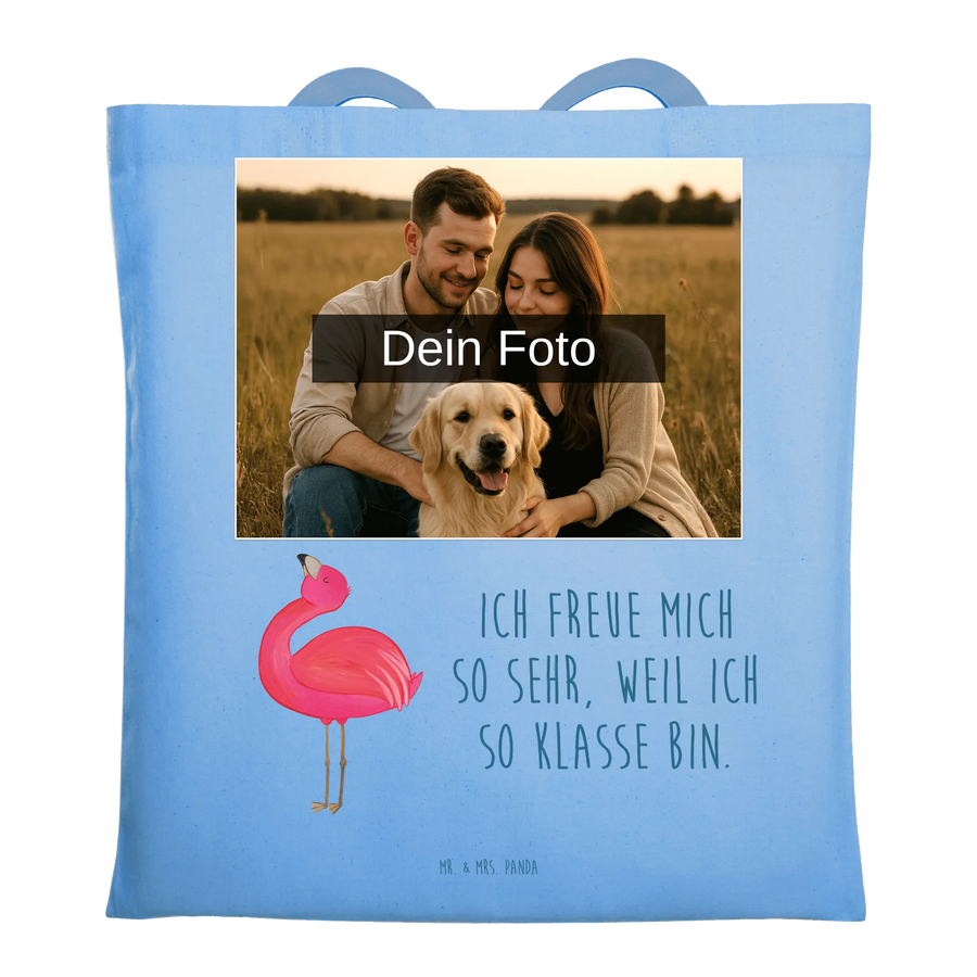 Personalisierte Foto Tragetasche Flamingo Stolz - Sky Blue