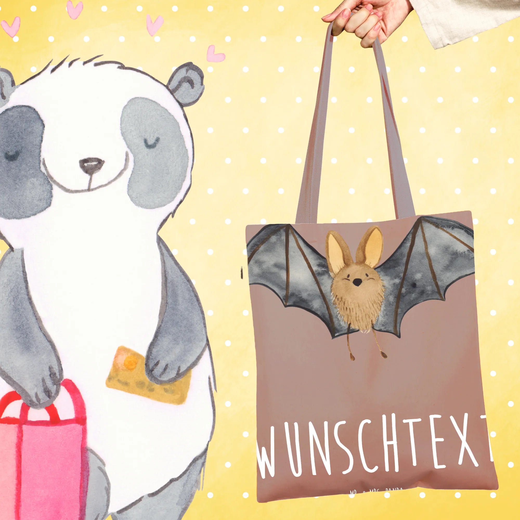 🐼 Mach die Tragetasche zu deinem persönlichen Accessoire mit deinem Namen oder Text.