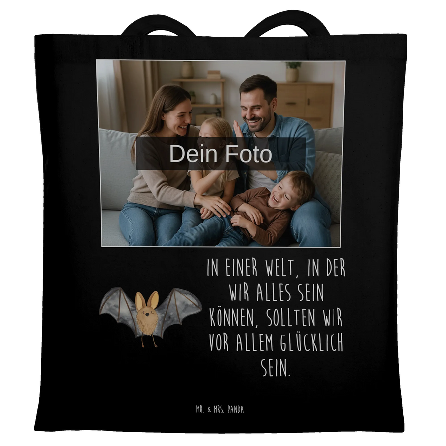Personalisierte Foto Tragetasche Fledermaus Flügel - Schwarz