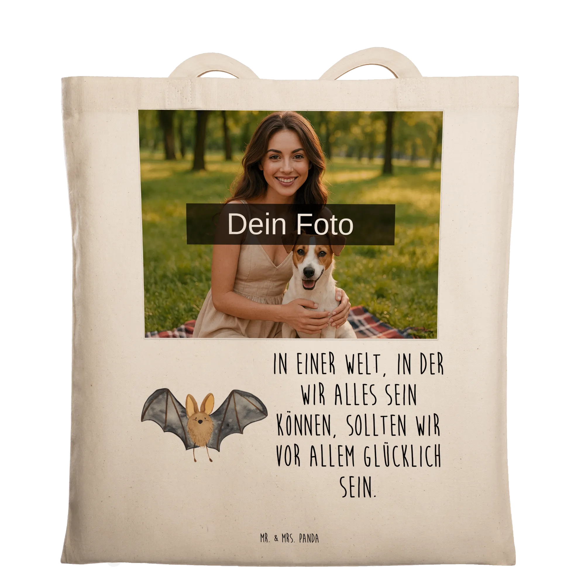 Es gibt nichts Besseres als die personalisierte Foto Tragetasche von Mr. & Mrs. Panda! Diese Tasche hat die Maße von 420 mm x 380 mm und ist ideal für jeden Tag. Sie besteht aus 100% Baumwolle und wiegt nur 140 g/m², was sie perfekt für jeden Anlass macht. Mit der Möglichkeit, dein Lieblingsfoto in hoher Qualität drucken zu lassen, wird diese Tasche zum Personal Style-Must-Have! Denk daran, dass das hochgeladene Bild eine gute Auflösung haben sollte, damit die Details schön zur Geltung kommen. Achte darauf, dass der Ausschnitt des Bildes einen ansprechenden Eindruck macht. Die langen Tragegriffe von 70 cm bieten hohen Tragekomfort, selbst bei schwerem Gepäck. Wir empfehlen eine lauwarme Handwäsche, um die schöne Optik der Tasche zu bewahren. Ob für dich selbst oder als tolles Geschenk – diese Tasche bringt Freude!
