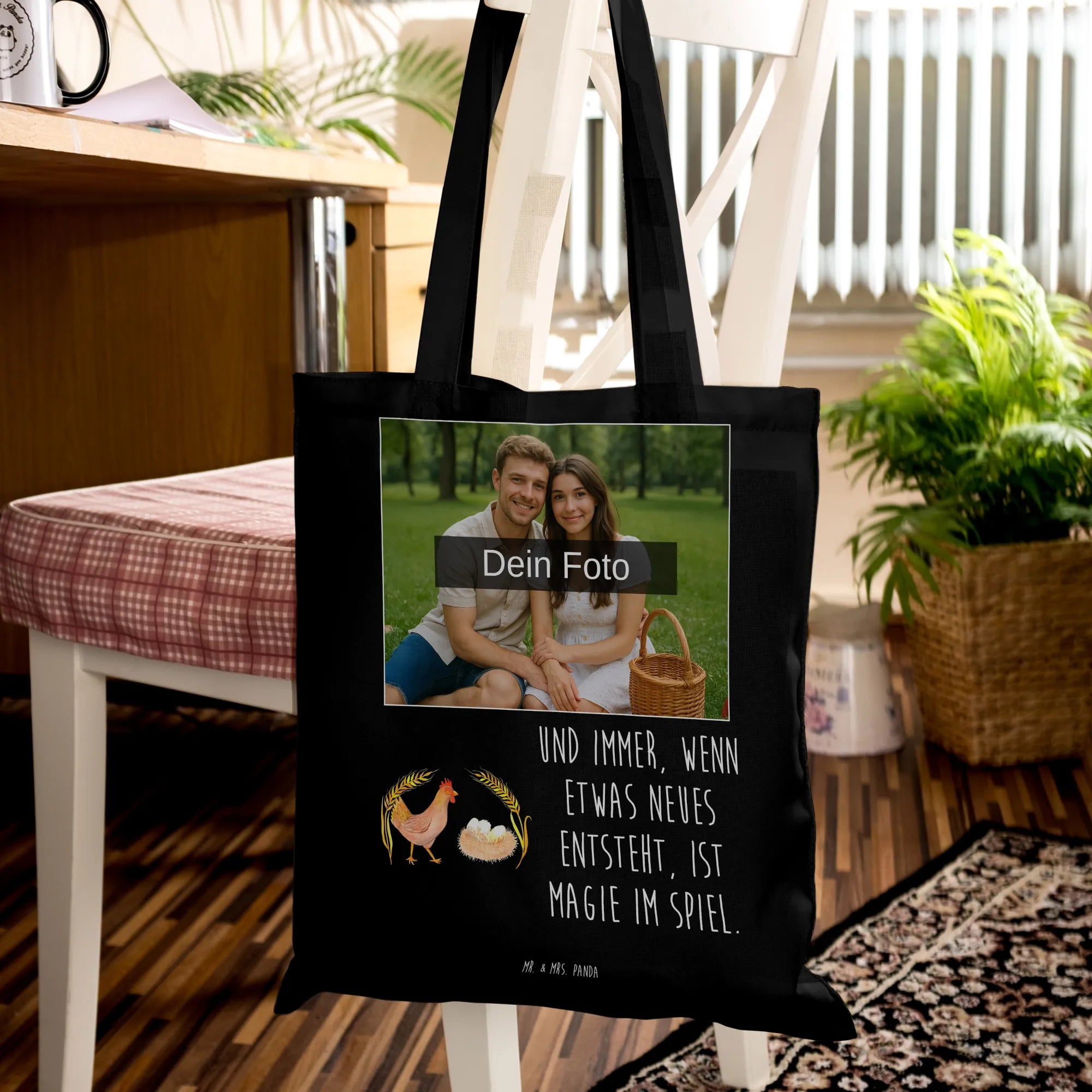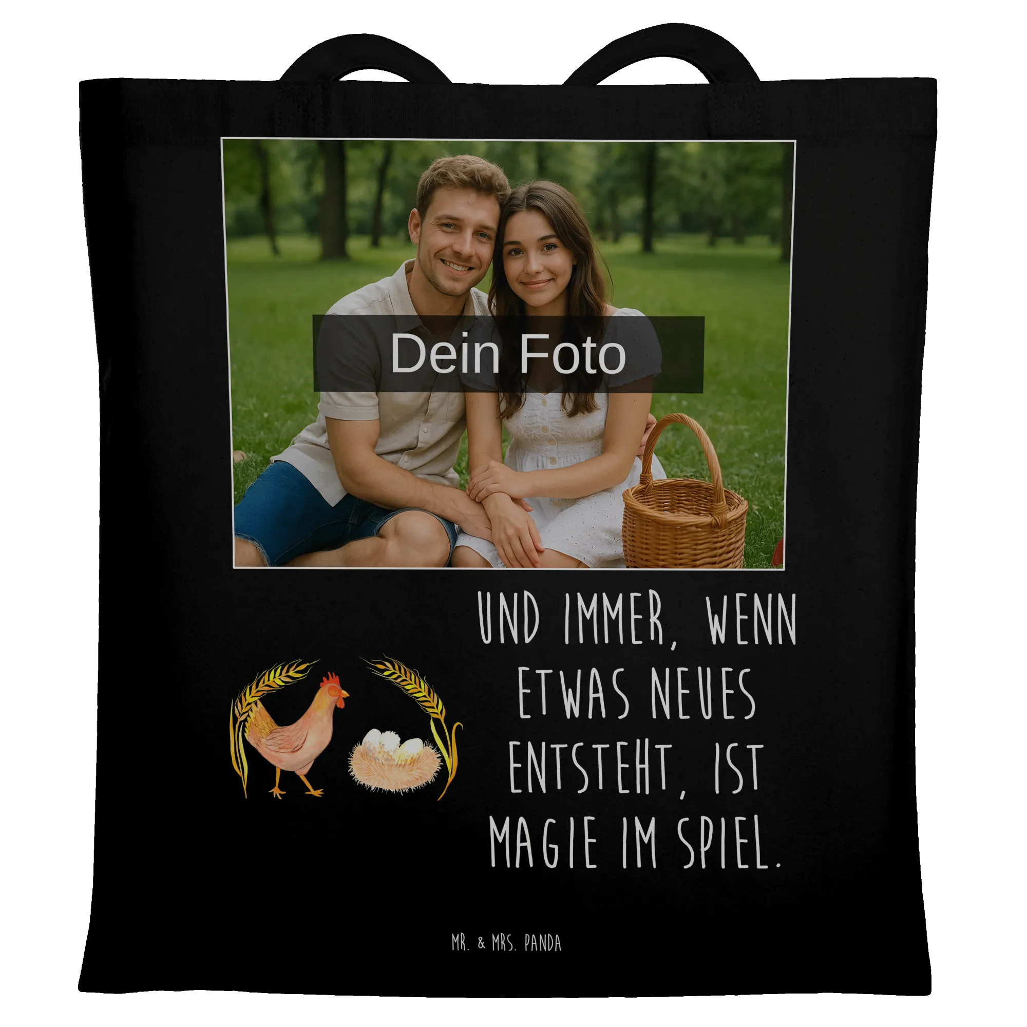 Personalisierte Foto Tragetasche Huhn Stolz - Schwarz