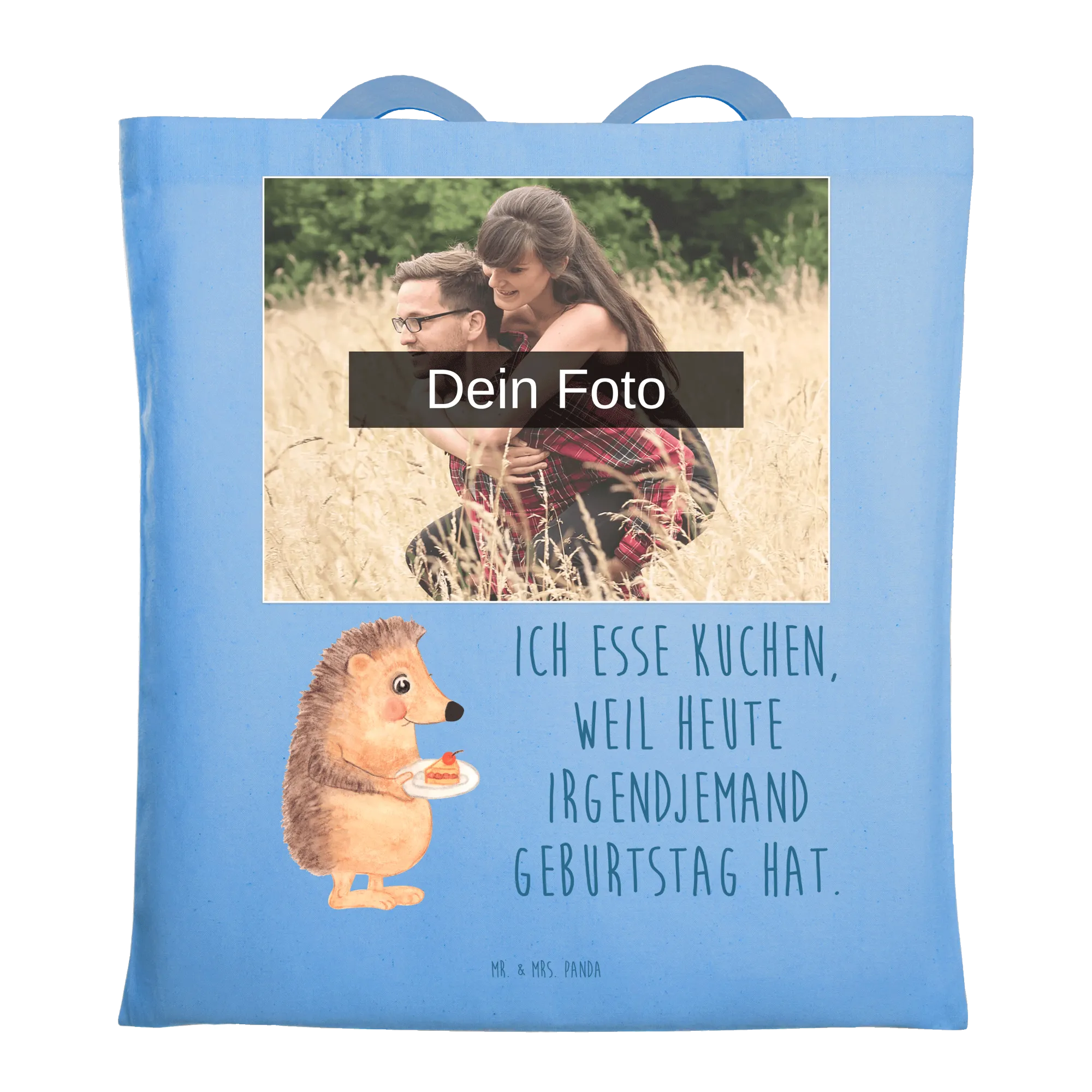 Personalisierte Foto Tragetasche Igel Kuchenstück - Sky Blue