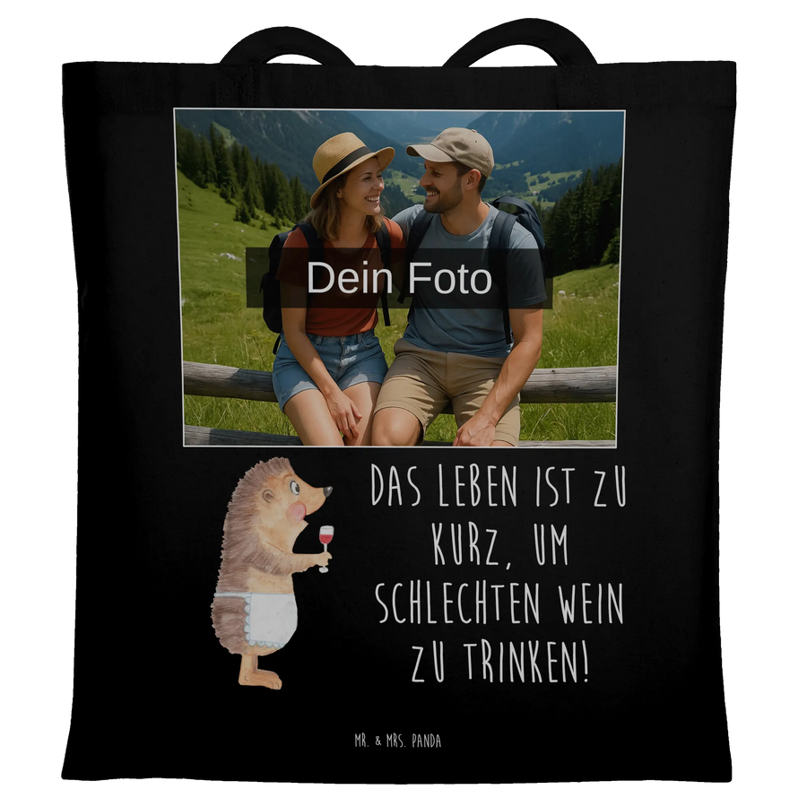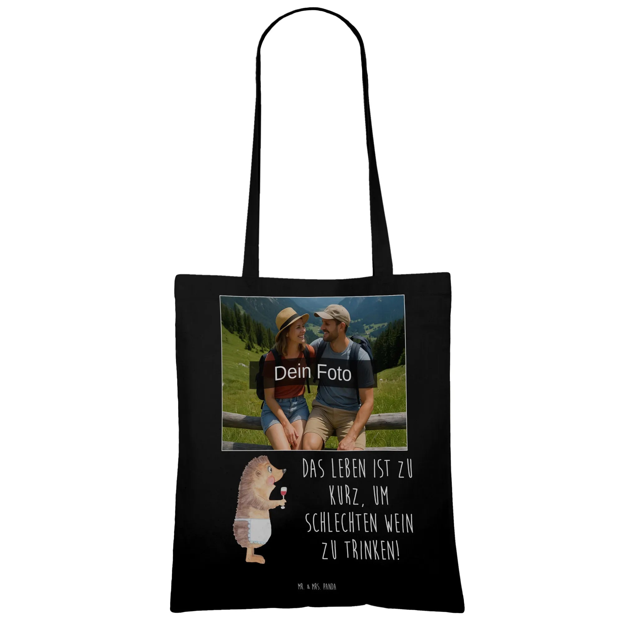 Personalisierte Foto Tragetasche Igel Wein - Schwarz