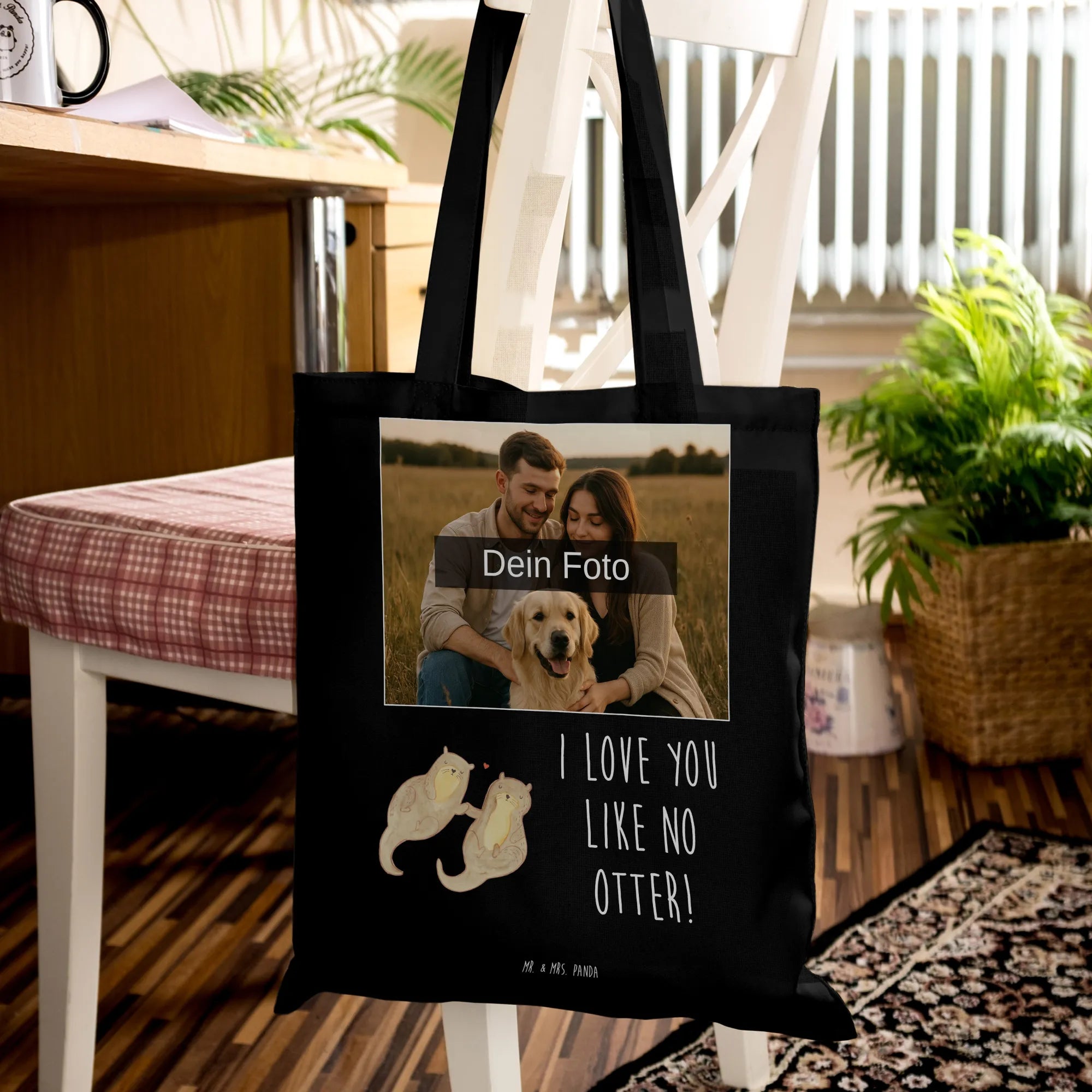 Personalisierte Foto Tragetasche Otter Hände halten - Schwarz