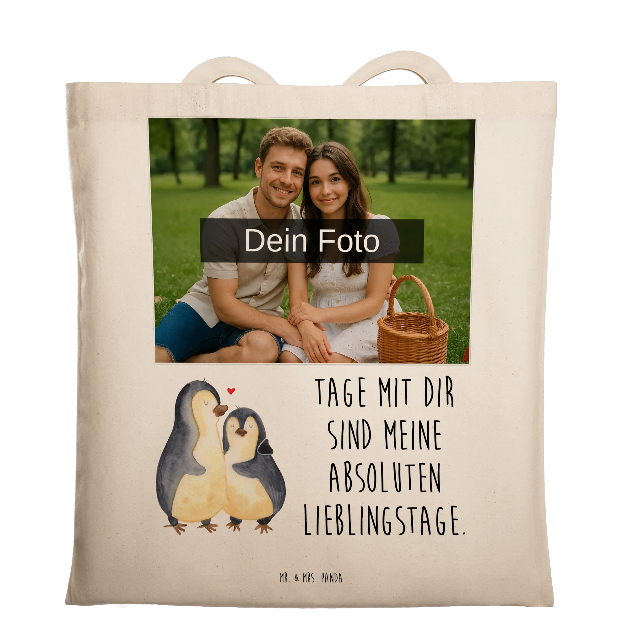 Verschönere deinen Alltag mit der personalisierten Foto Tragetasche von Mr. & Mrs. Panda! Diese trendige Tasche hat die Maße 420 mm x 380 mm und bietet ausreichend Platz für alles, was du unterwegs benötigst. Sie ist aus 100% Baumwolle mit einem Gewicht von 140 g/m² gefertigt, was sie sowohl praktisch als auch umweltfreundlich macht. Gestalte sie mit deinem eigenen Foto und bring dein persönliches Flair zum Vorschein! Bitte achte darauf, dass die Bildqualität stimmt, um ein tolles Druckergebnis zu erhalten. Der Bildausschnitt muss sorgfältig gewählt werden, damit dein Motiv optimal zur Geltung kommt. Mit langen Tragegriffen von 70 cm ist die Tasche super bequem zu tragen. Damit du lange Freude an ihr hast, empfehlen wir eine Pflege durch lauwarme Handwäsche. Dies ist die ideale Tasche für Geschenke oder um deiner Garderobe eine besondere Note zu verleihen!