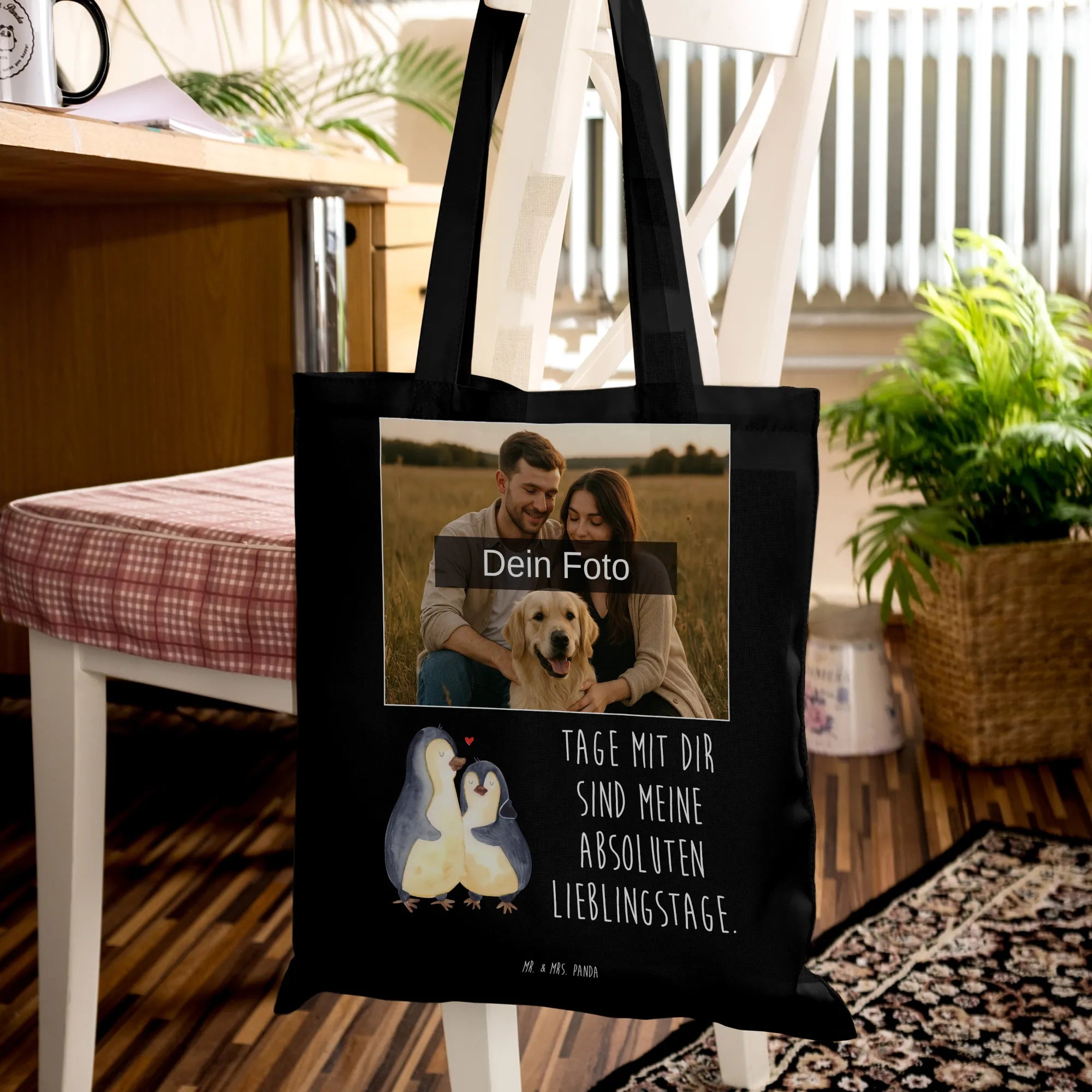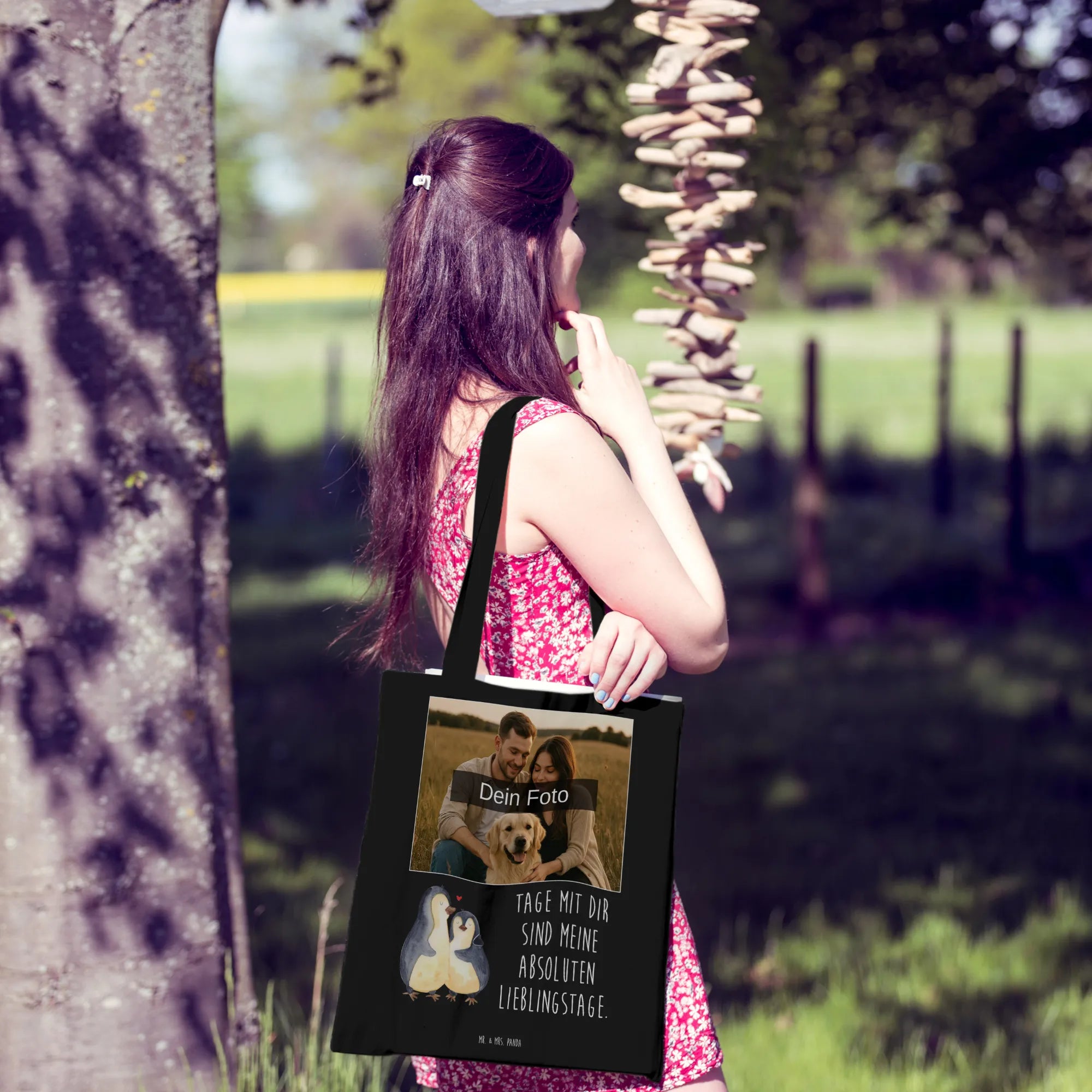 Personalisierte Foto Tragetasche Pinguin umarmen - Schwarz