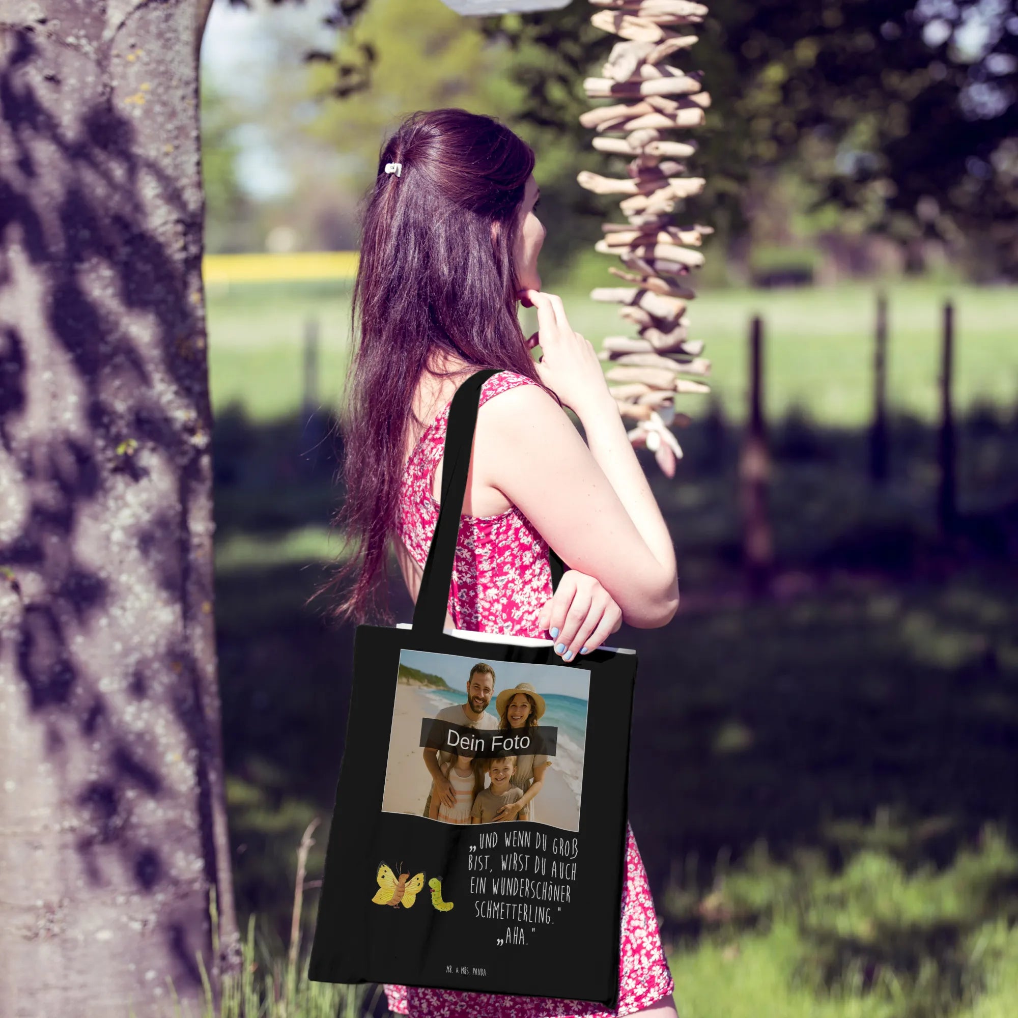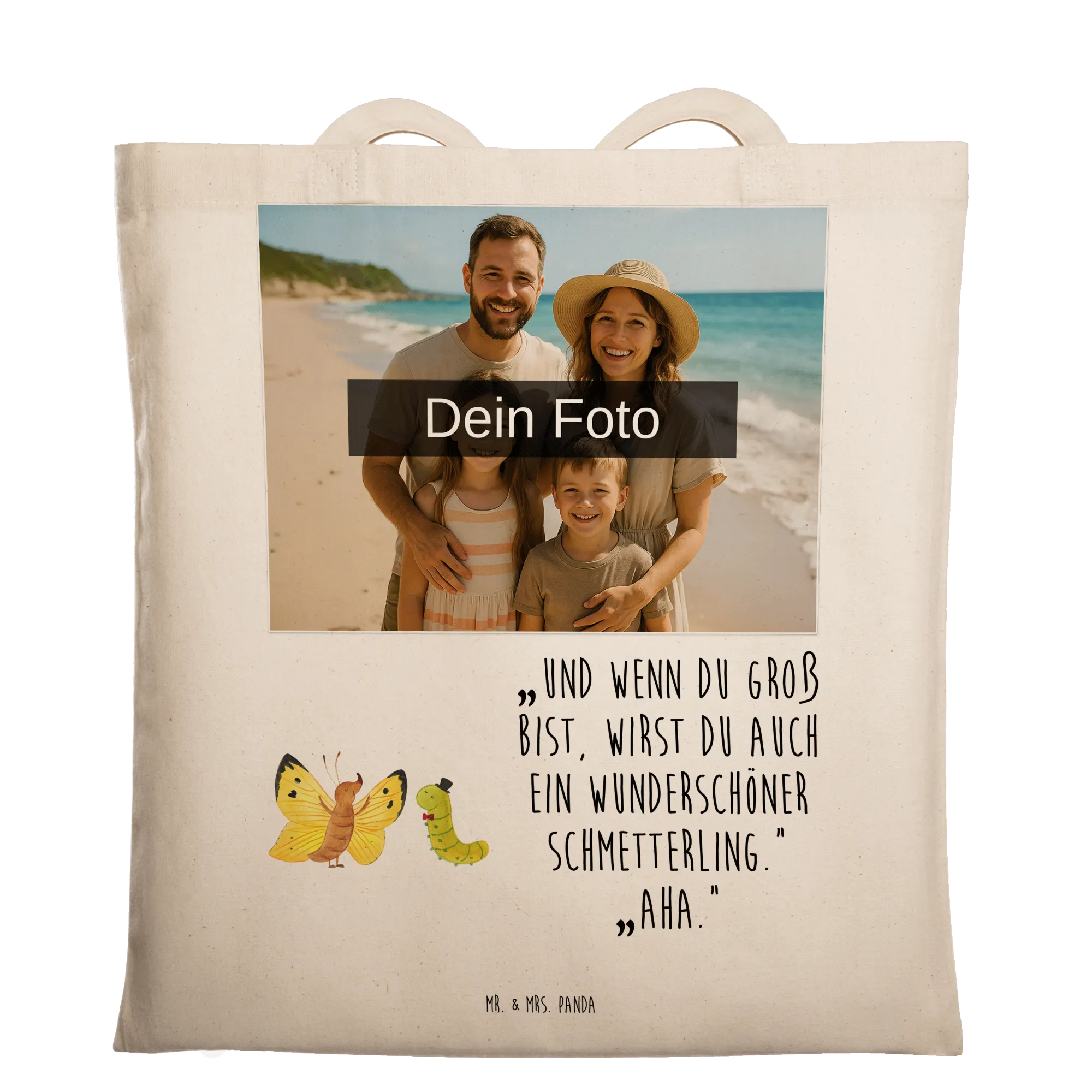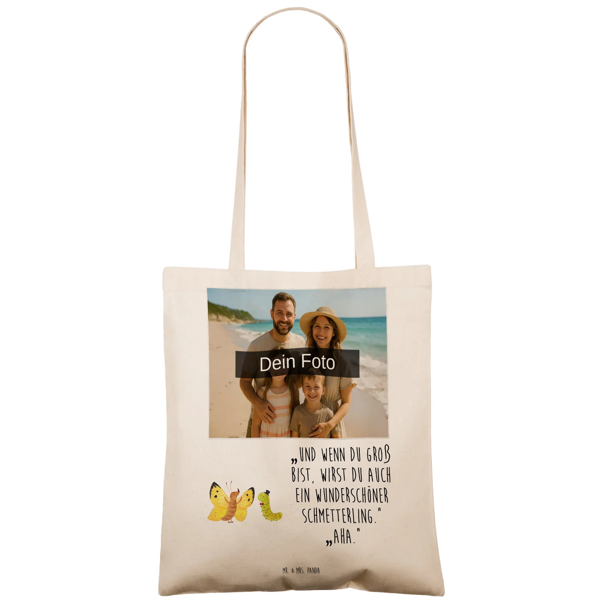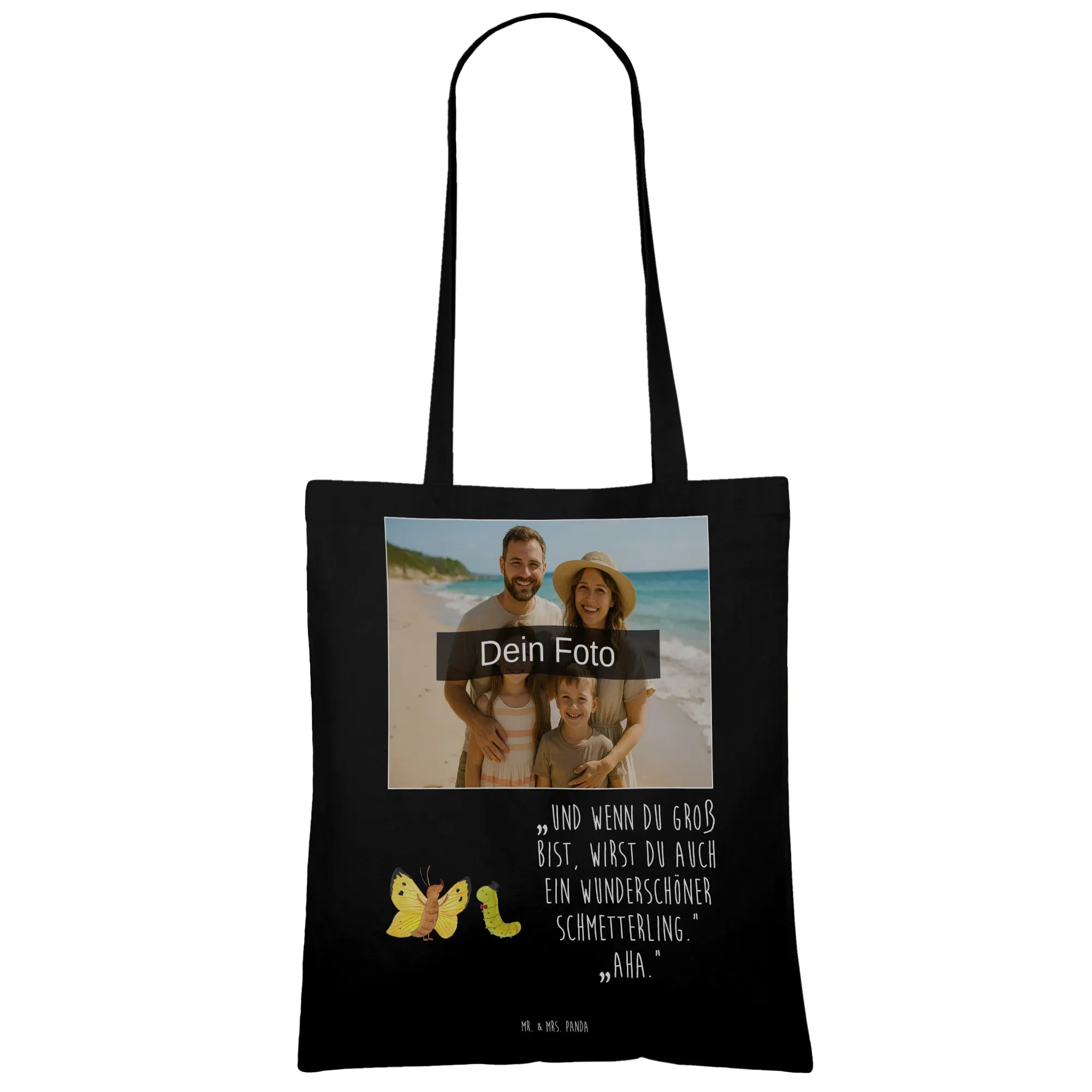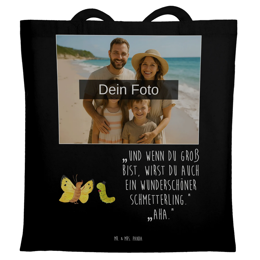 Personalisierte Foto Tragetasche Raupe Schmetterling - Schwarz