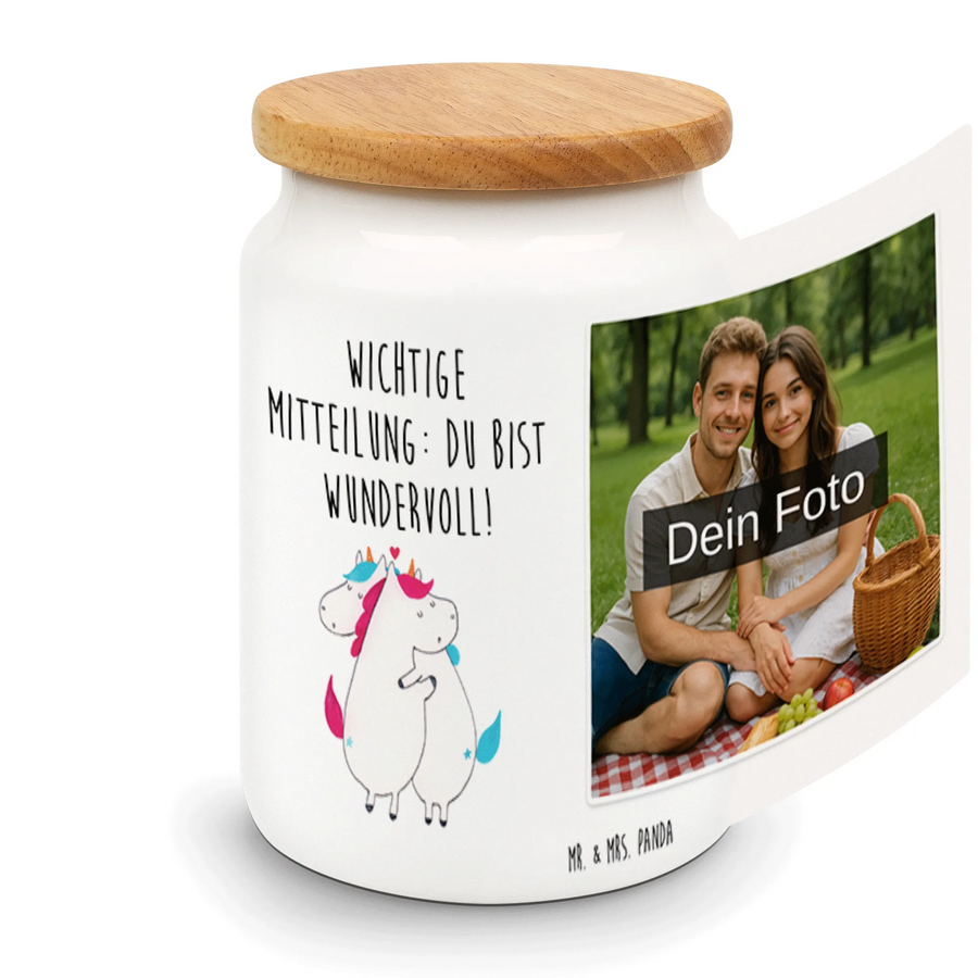Personalisierte Foto Vorratsdose Einhorn Mitteilung