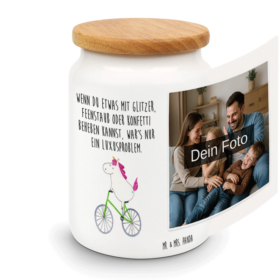 Personalisierte Foto Vorratsdose Einhorn Radfahrer