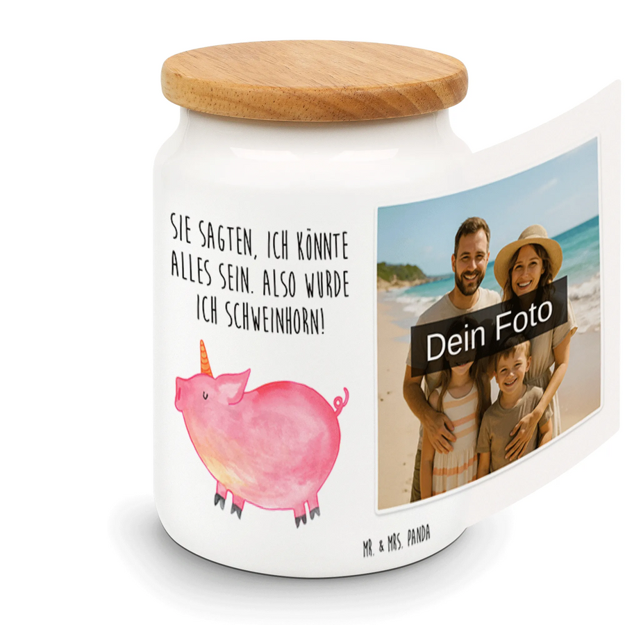 Personalisierte Foto Vorratsdose Einhorn Schwein