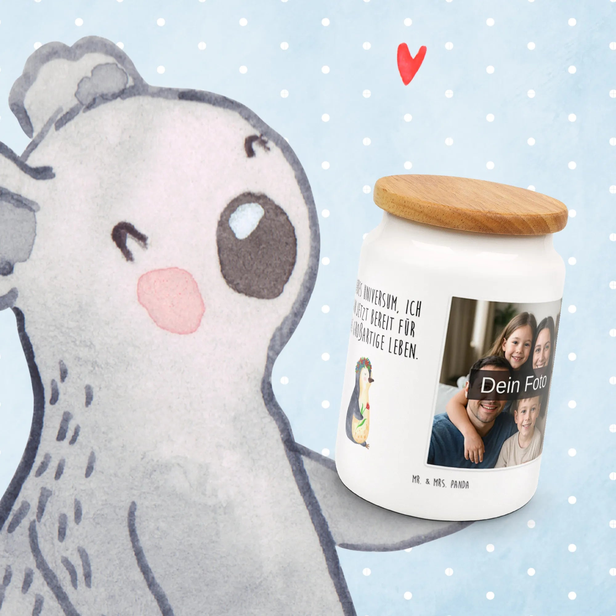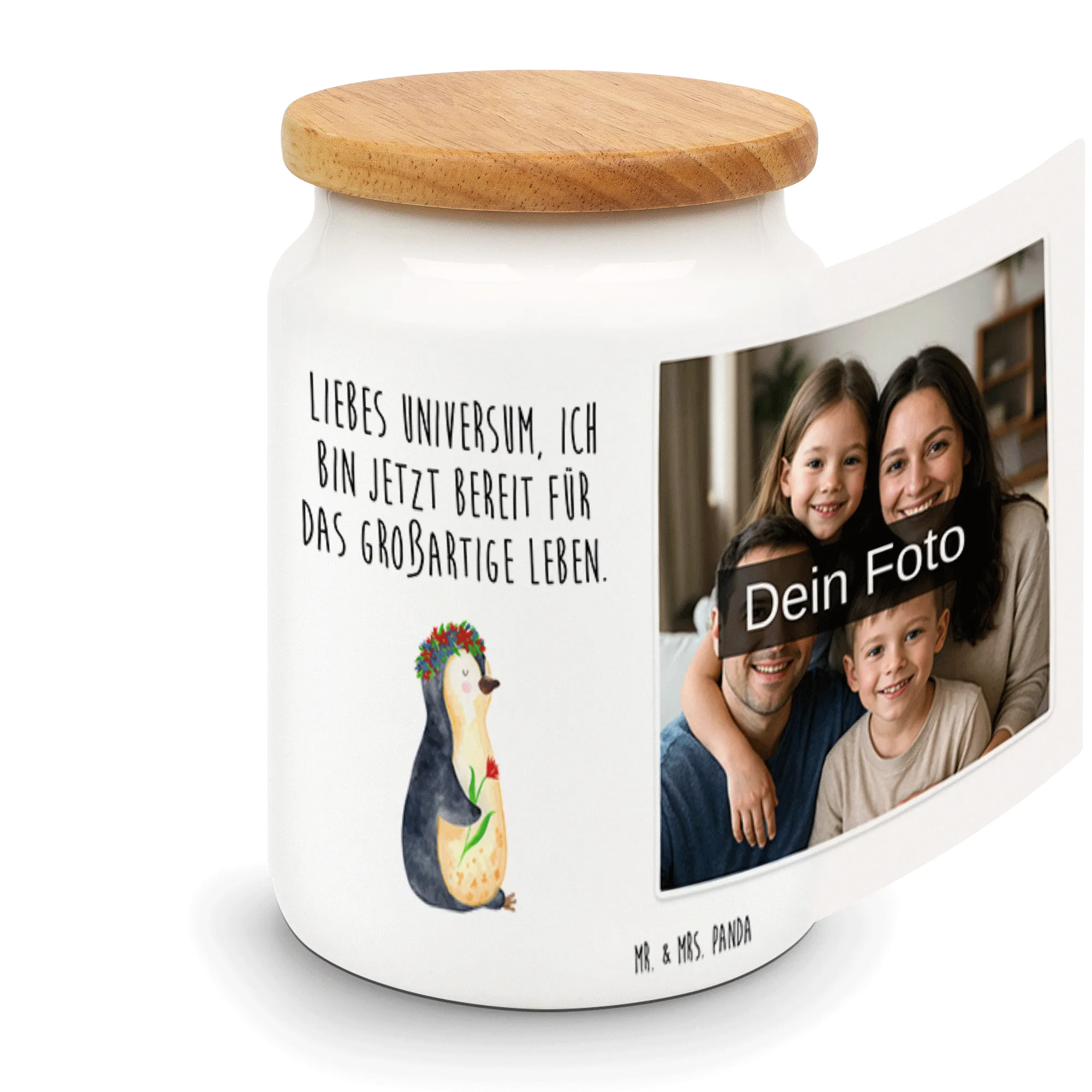 Personalisierte Foto Vorratsdose Pinguin Blumen