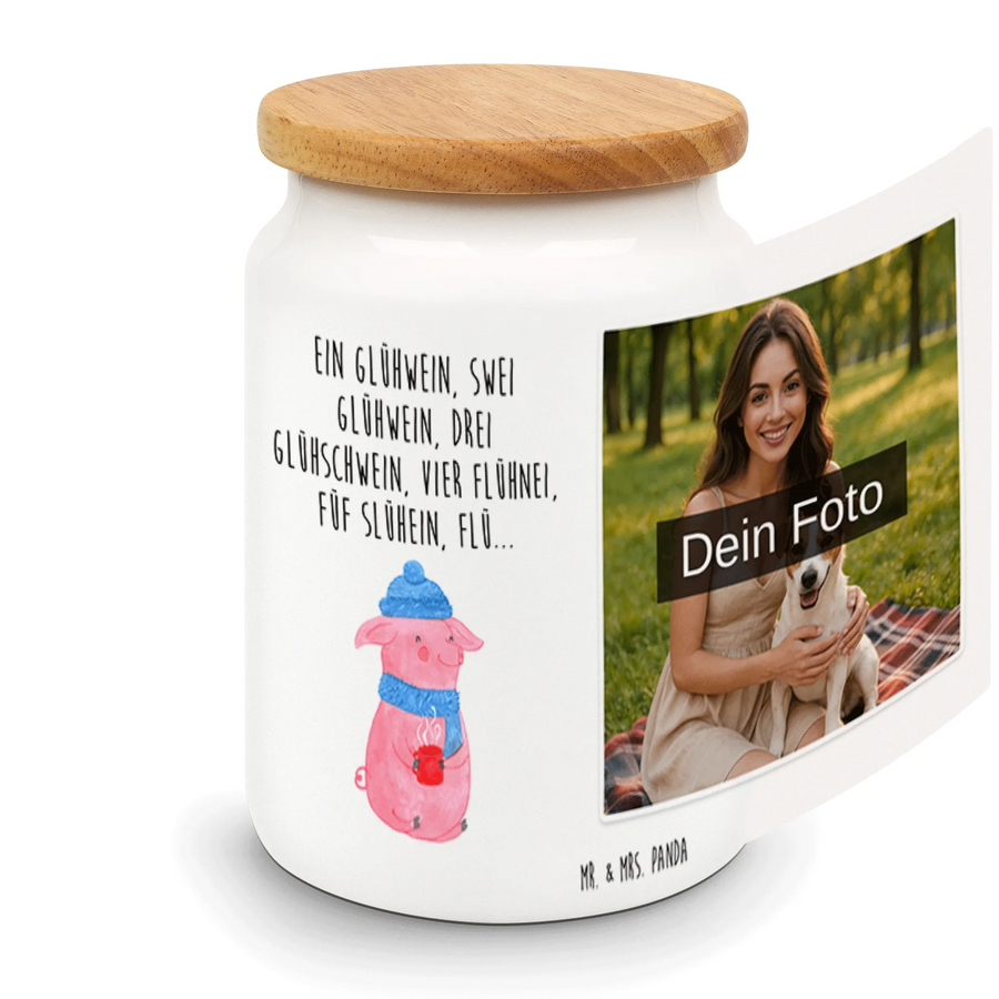Personalisierte Foto Vorratsdose Schweinchen Glühwein