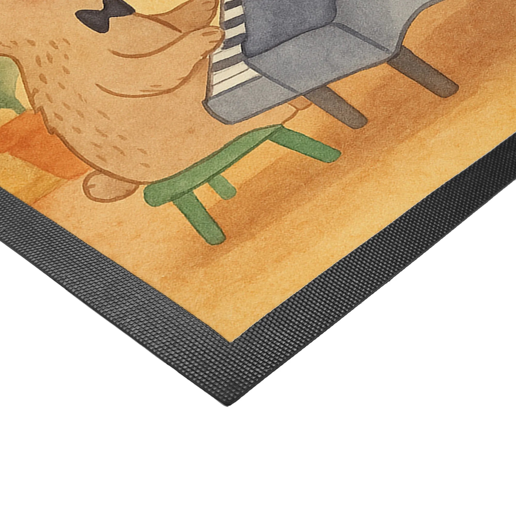 Mit der personalisierten Fußmatte von Mr. & Mrs. Panda begrüßt du deine Gäste auf ganz besondere Art und Weise. Diese hochwertige Matratze hat die Maße von 600 mm x 900 mm x 5 mm. Der vordere Teil besteht aus robustem Polyesterfilz, der nicht nur optisch ansprechend, sondern auch extrem langlebig ist. Mit einem schönen Spruch oder deinem eigenen Wunschtext hast du die Möglichkeit, diese Fußmatte ganz persönlich zu gestalten. Der breite Gummirand sorgt dafür, dass die Matte nicht ausfranst und dass du einen sicheren Halt hast. Die Rückseite ist gummiert, was die Rutschfestigkeit erhöht und die Matte an Ort und Stelle hält. Außerdem ist die Fußmatte abriebfest und wetterbeständig, damit du lange Freude daran hast. Einfache Pflege ist ebenfalls garantiert: einfach ausklopfen, absaugen oder bis 30°C waschen, um hartnäckige Flecken zu entfernen. Diese Fußmatte ist nicht nur funktional, sondern auch ein liebevolles Wohnaccessoire für jeden Eingangsbereich.
