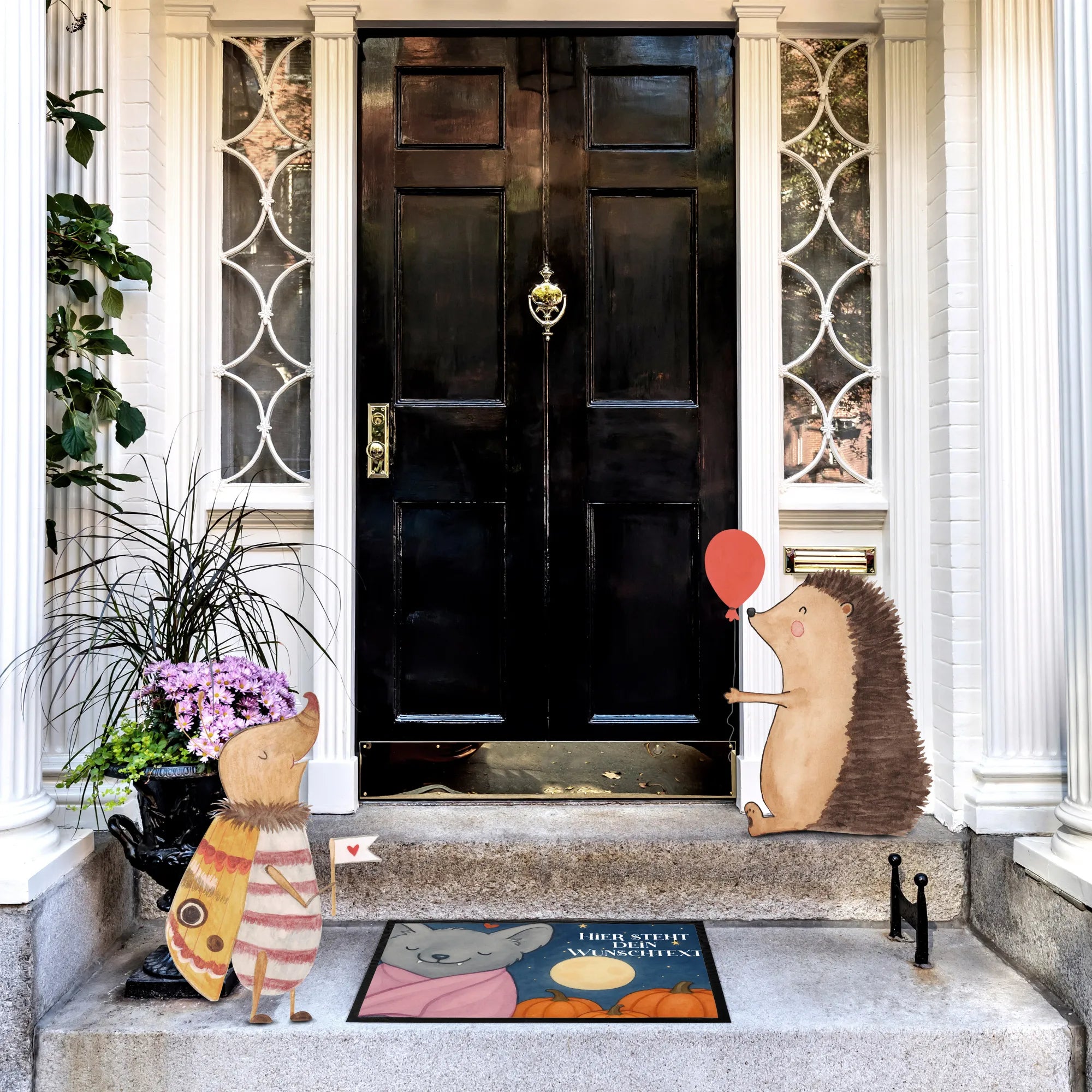 Begrüße deine Gäste mit Stil und Persönlichkeit mit der personalisierten Fußmatte von Mr. & Mrs. Panda! Diese tolle Fußmatte hat die Maße von 600 mm x 900 mm x 5 mm und ist sowohl funktional als auch ein echter Blickfang. Hergestellt aus widerstandsfähigem Polyesterfilz, kannst du sie ganz einfach nach deinem Wunsch mit einem persönlichen Text oder einem schönen Spruch verschönern. Der gummierte Untergrund sorgt für einen rutschfesten Halt, während der breite Gummirand das Ausfransen verhindert. Einfach in der Pflege: einfach abklopfen, absaugen oder bei 30°C waschen. Sie ist absolut wetterbeständig und hält allen Herausforderungen stand, egal wo du sie hinlegst. Diese Fußmatte wird nicht nur dein Zuhause bereichern, sondern auch deiner Kreativität freien Lauf lassen!