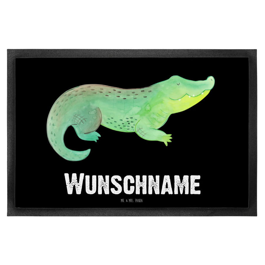 Willkommen in der bunten Welt der personalisierten Fußmatten von Mr. & Mrs. Panda! Unsere personalisierte Fußmatte mit dem Krokodil-Motiv aus der traumhaften Meerestiere-Kollektion ist die perfekte Geschenkidee für all jene, die das Abenteuer lieben und das Leben mit einem Lächeln an der Haustür beginnen möchten. Diese Fußmatte lädt nicht nur dazu ein, spontan zu sein, sondern macht auch jeden Eingang zu etwas ganz Besonderem. In strahlenden Grün- und Blautönen erstrahlt unser freundliches Krokodil, das mit einem bezaubernden Lächeln und liebevollen Details, wie verspielten Punkten und Linien, begeistert. Es vermittelt nicht nur Freude, sondern macht auch Erinnerungen lebendig, die Du gerne mit Deinen Freunden und Deiner Familie teilst.