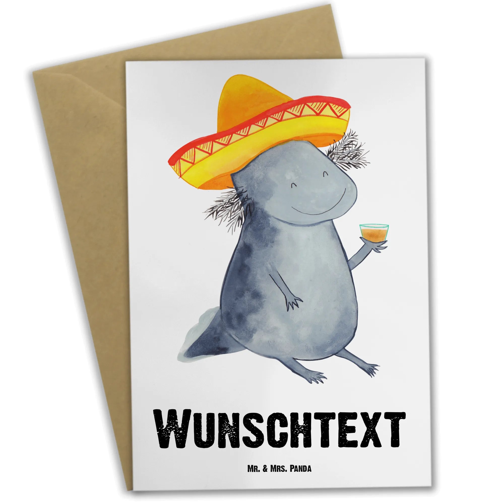 Die personalisierte Grußkarte mit dem bezaubernden Axolotl Tequila Motiv von Mr. & Mrs. Panda ist das perfekte Geschenk für jeden Anlass! Egal ob zur Hochzeit, zum Geburtstag oder als liebevolle Glückwunschkarte, diese einzigartige Karte zaubert jedem ein Lächeln ins Gesicht. Mit dem Spruch 'Wenn das Leben dir saures gibt, frag nach Salz & Tequila' bringt dies nicht nur gute Laune, sondern auch individuelle Ansprache durch deinen Wunschnamen oder Wunschtext auf der Vorderseite.