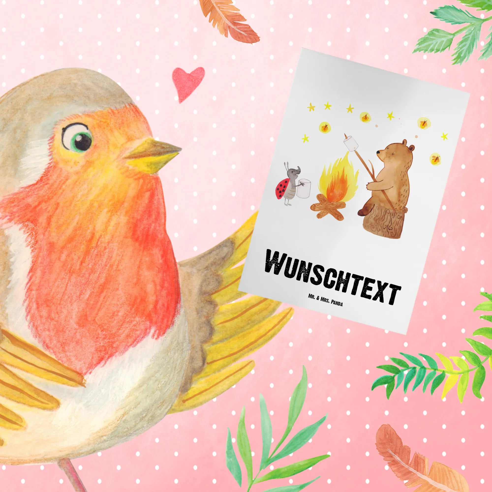 Personalisierte Grußkarte Bär & Marienkäfer Lagerfeuer