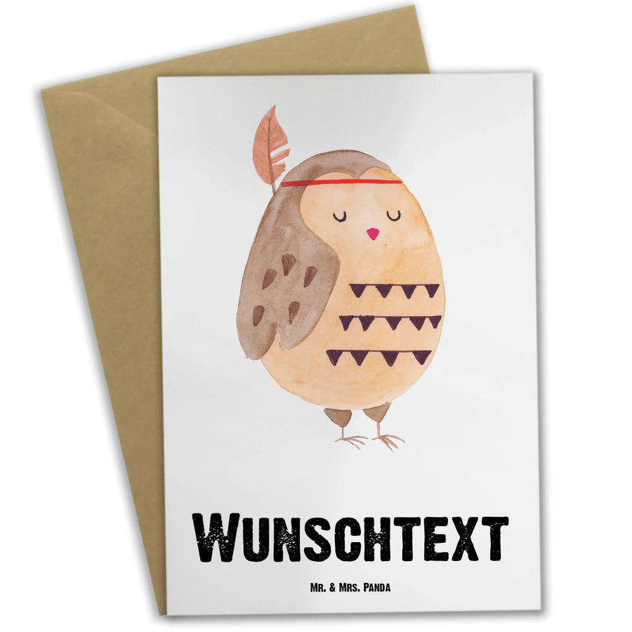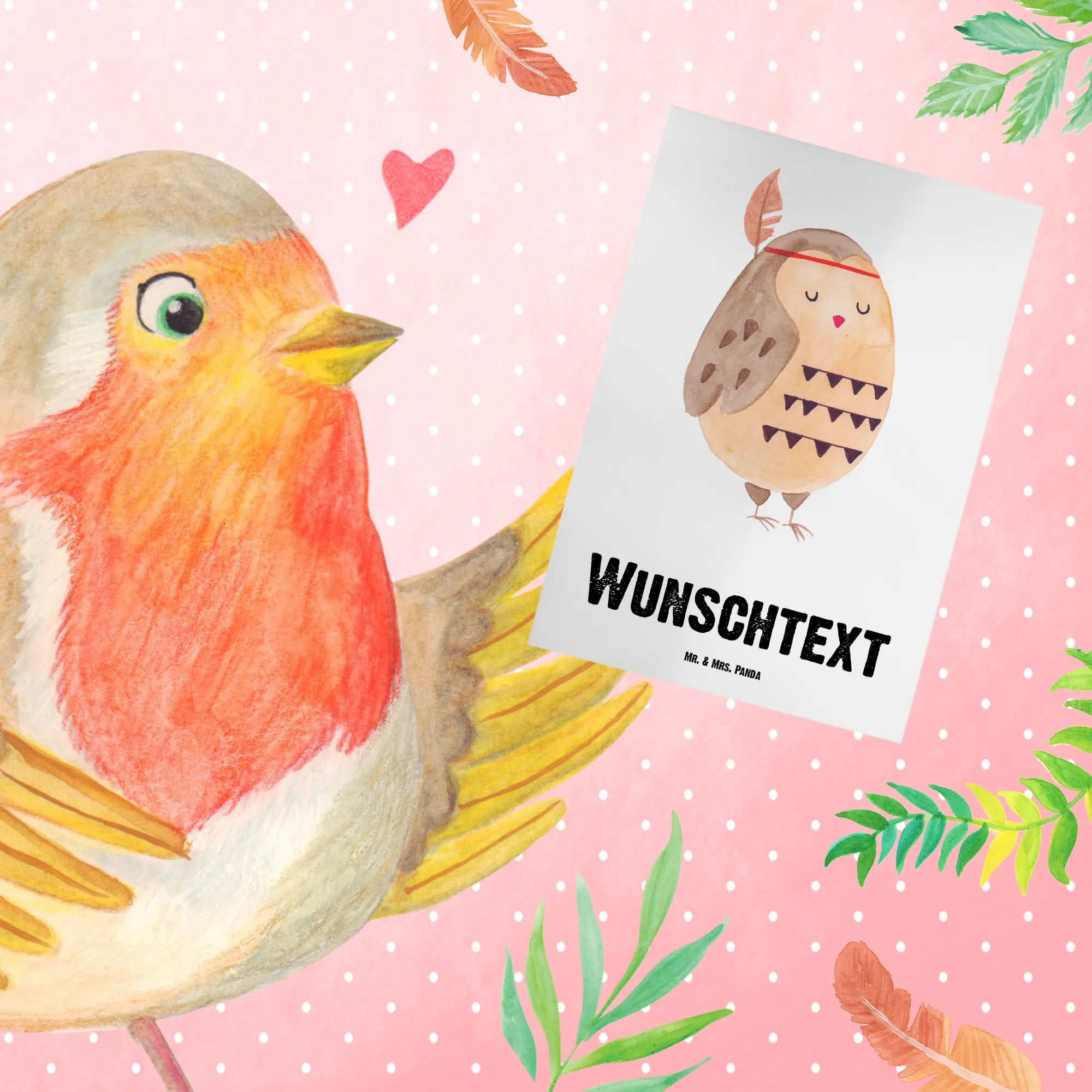 Sie ist personalisierbar mit deinem Wunschnamen oder einem Wunschtext, sodass du jedem eine ganz persönliche Botschaft übermitteln kannst. Die Eule auf der Karte wird von einem hübschen Federschmuck umrahmt und verleiht der Grußkarte ein ganz besonderes Flair. Sie symbolisiert Freiheit und Abenteuer – perfekt für alle, die das Leben in vollen Zügen genießen und anderen Freude bereiten möchten.