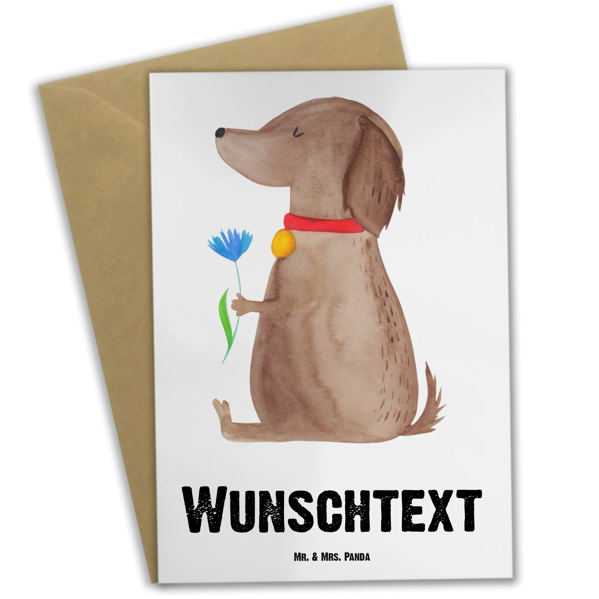 Verschenke Liebe und Freude mit der einzigartigen Grußkarte von Mr. & Mrs. Panda! Sie ist ideal für die Individualisierung deiner Grüße oder Glückwünsche zu feierlichen Anlässen. Mit der personalisierten Grußkarte "Hund Blume" zeigst du, dass du dir Gedanken gemacht hast und damit das Herz eines jeden Hundebesitzers höherschlagen wird.