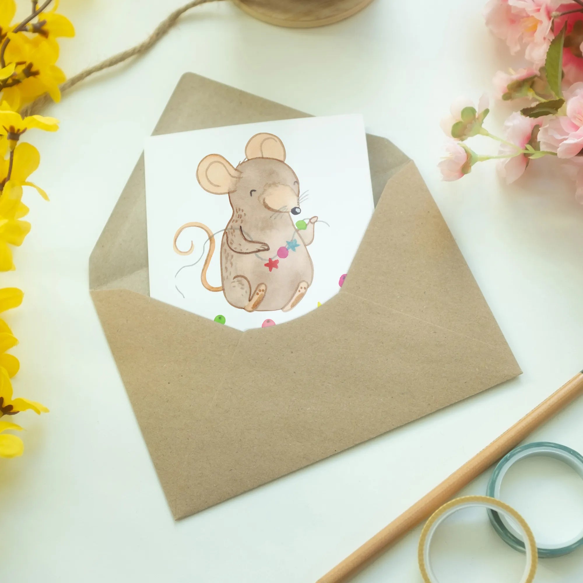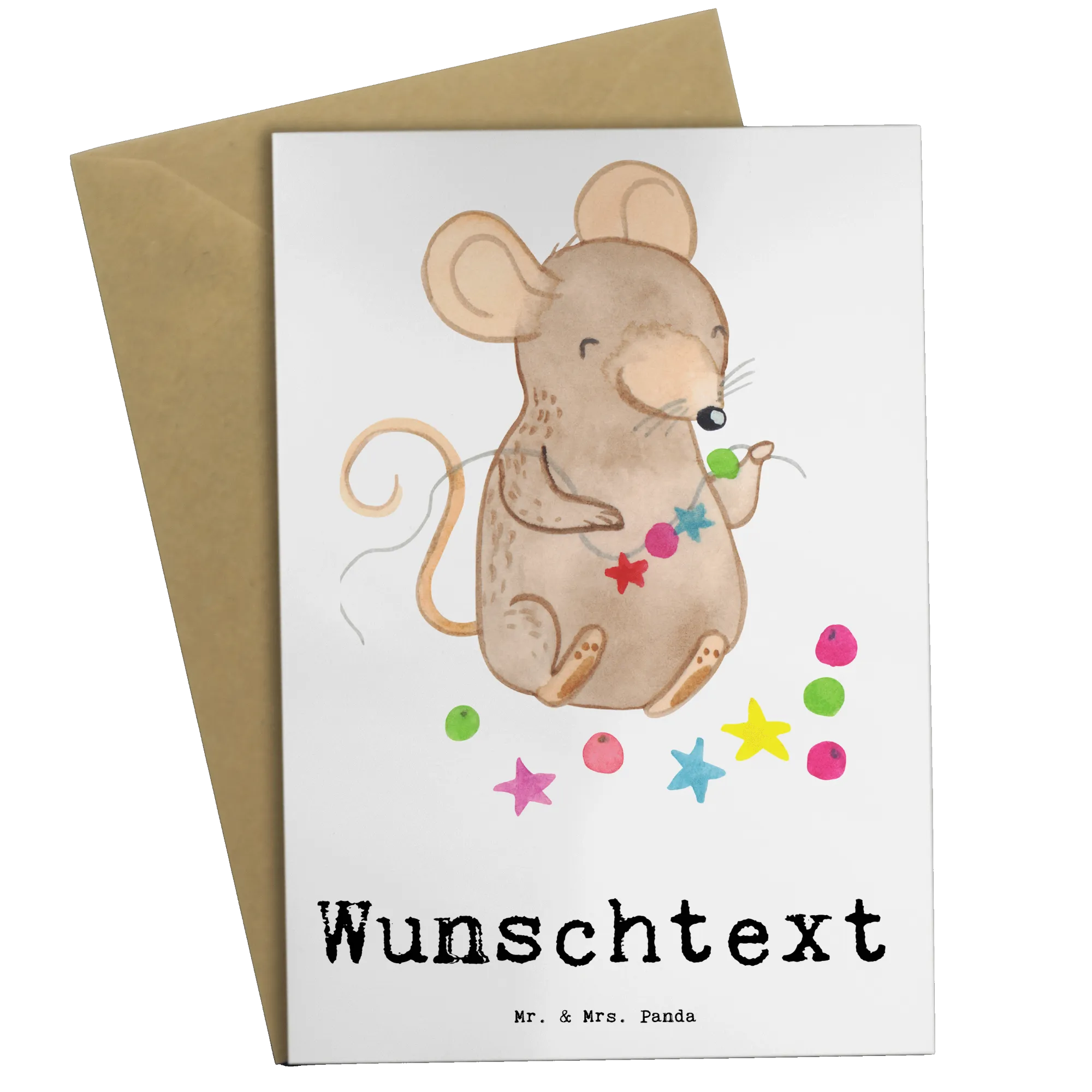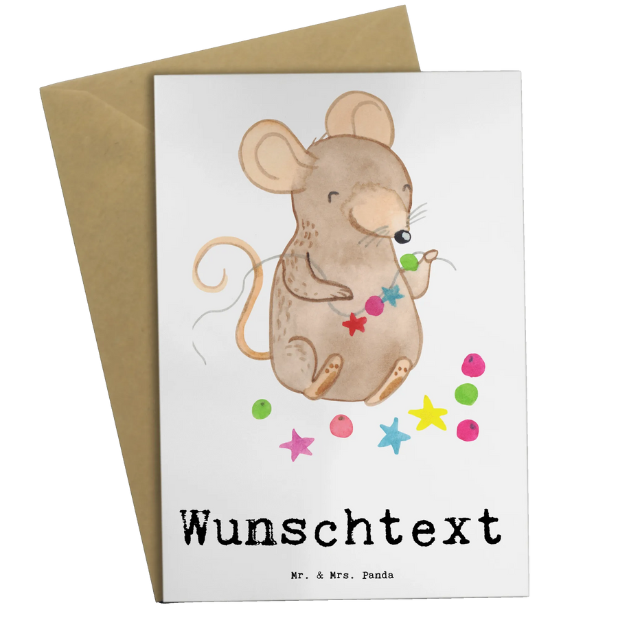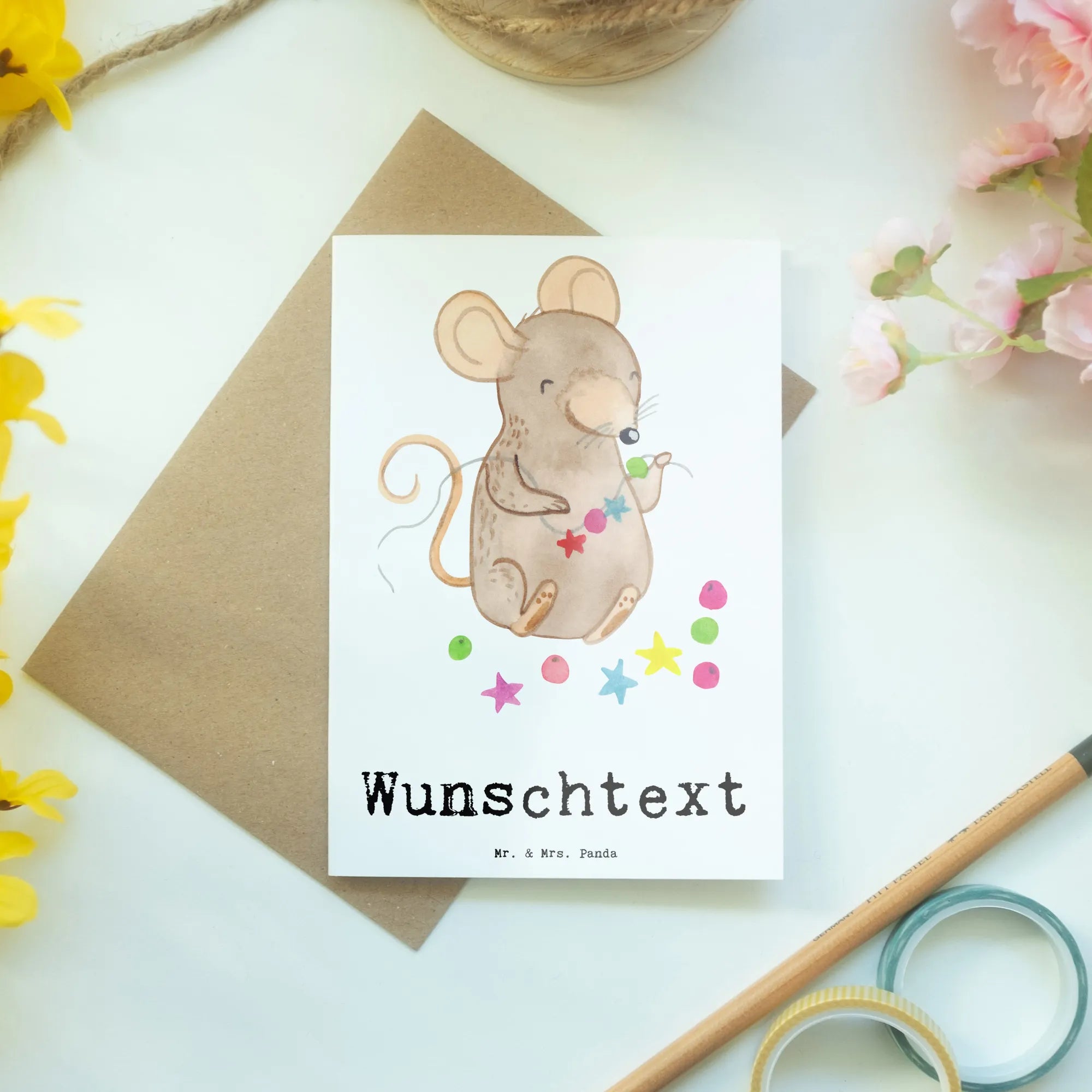 Die personalisierte Grußkarte "Maus Schmuck selber machen Tage" aus der zauberhaften Hobby & Sport Kollektion von Mr. & Mrs. Panda ist ein ganz besonderes Geschenk für alle, die das Basteln und die Kreativität lieben!