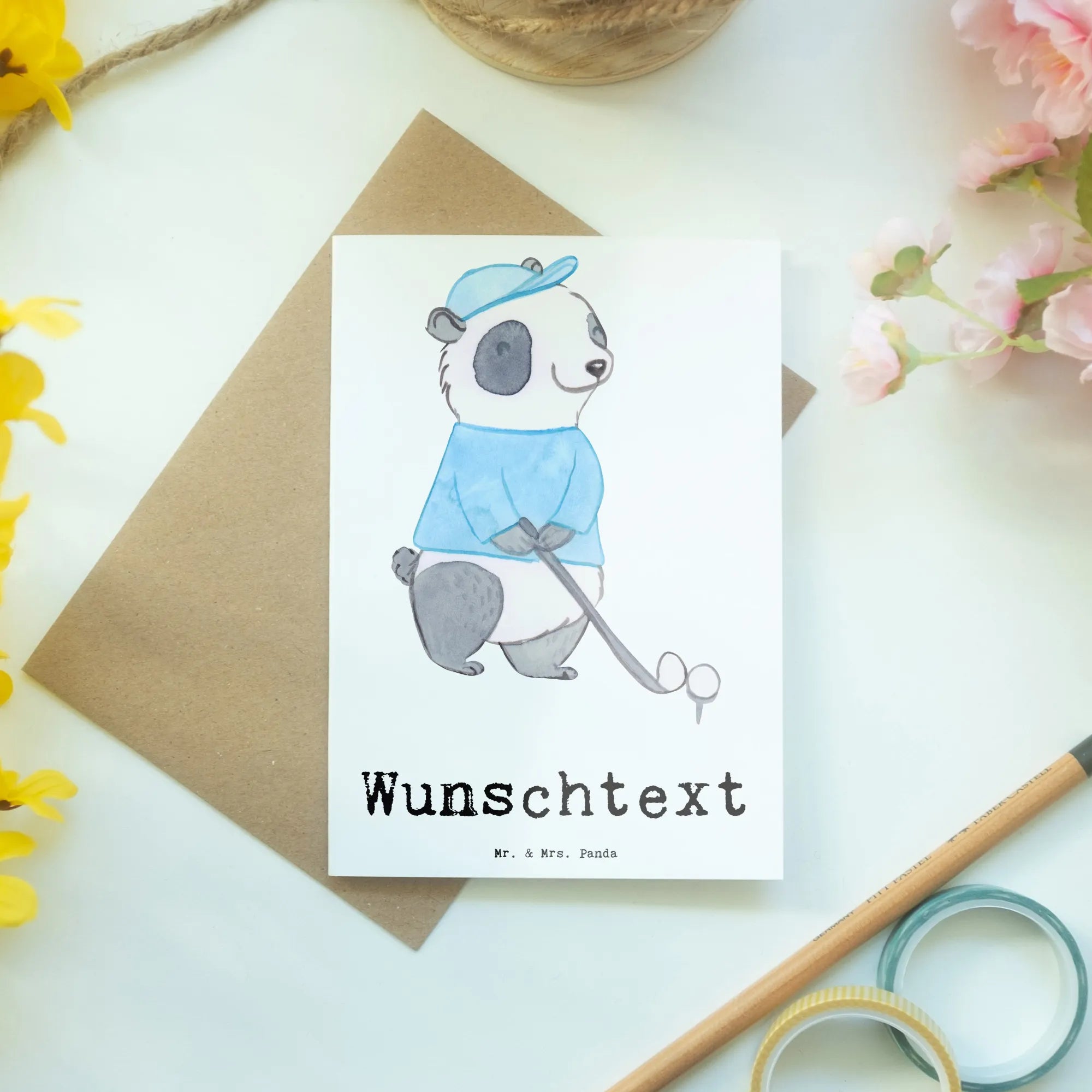 Du suchst das perfekte Geschenk für einen leidenschaftlichen Golfer? Dann ist die personalisierte Grußkarte "Panda Golfen Tage" aus der Kollektion Hobby & Sport von Mr. & Mrs. Panda genau das Richtige! Diese einzigartige Karte ist nicht nur ein schöner Gruß, sondern auch ein ganz persönliches Geschenk, das mit einem Namen oder Wunschtext verziert werden kann. Der süße Panda in seinem Golfoutfit ist bereit, auf den Golfplatz zu gehen und bringt mit dem Spruch "Es gibt schlechte Tage, und es gibt Tage, an denen ich zum Golfen gehe" ein Lächeln auf jedes Gesicht.