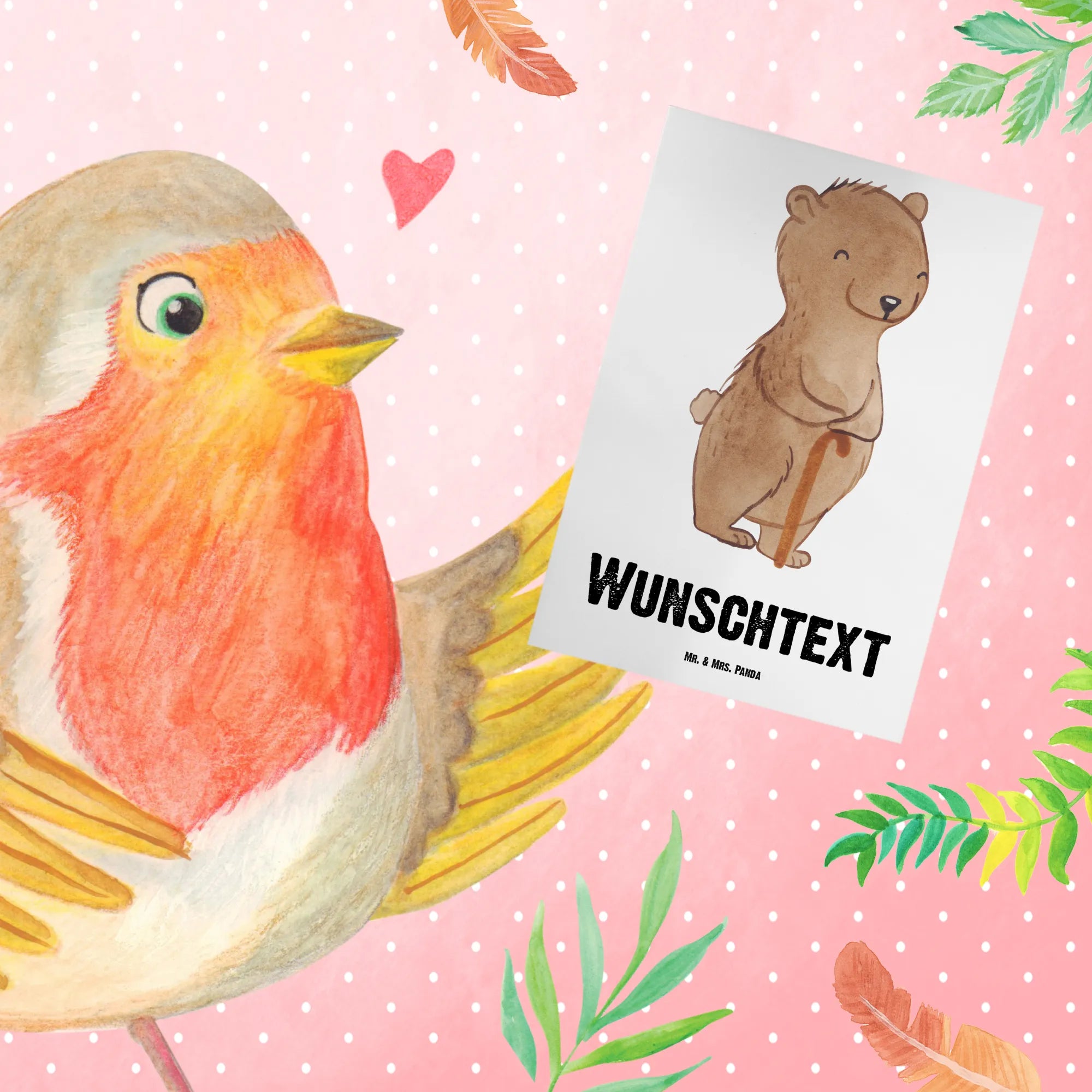 Die Karte ist personalisierbar mit deinem Wunschnamen oder Wunschtext und zeigt auf der Vorderseite den süßen Bären, der sich mit einem Spazierstock abstützt. Dieser Bär symbolisiert Mut und Hoffnung und bringt ein Lächeln ins Gesicht. Die Hochglanzveredlung der Vorder- und Rückseite verleiht der Karte eine edle Optik, während die matte Innenseite perfekt für persönliche Botschaften geeignet ist. Mit dem edlen Umschlag ist diese Grußkarte das ideale Geschenk, um deinen Gedanken Ausdruck zu verleihen und deinem Gegenüber zu zeigen, dass du an ihn denkst.