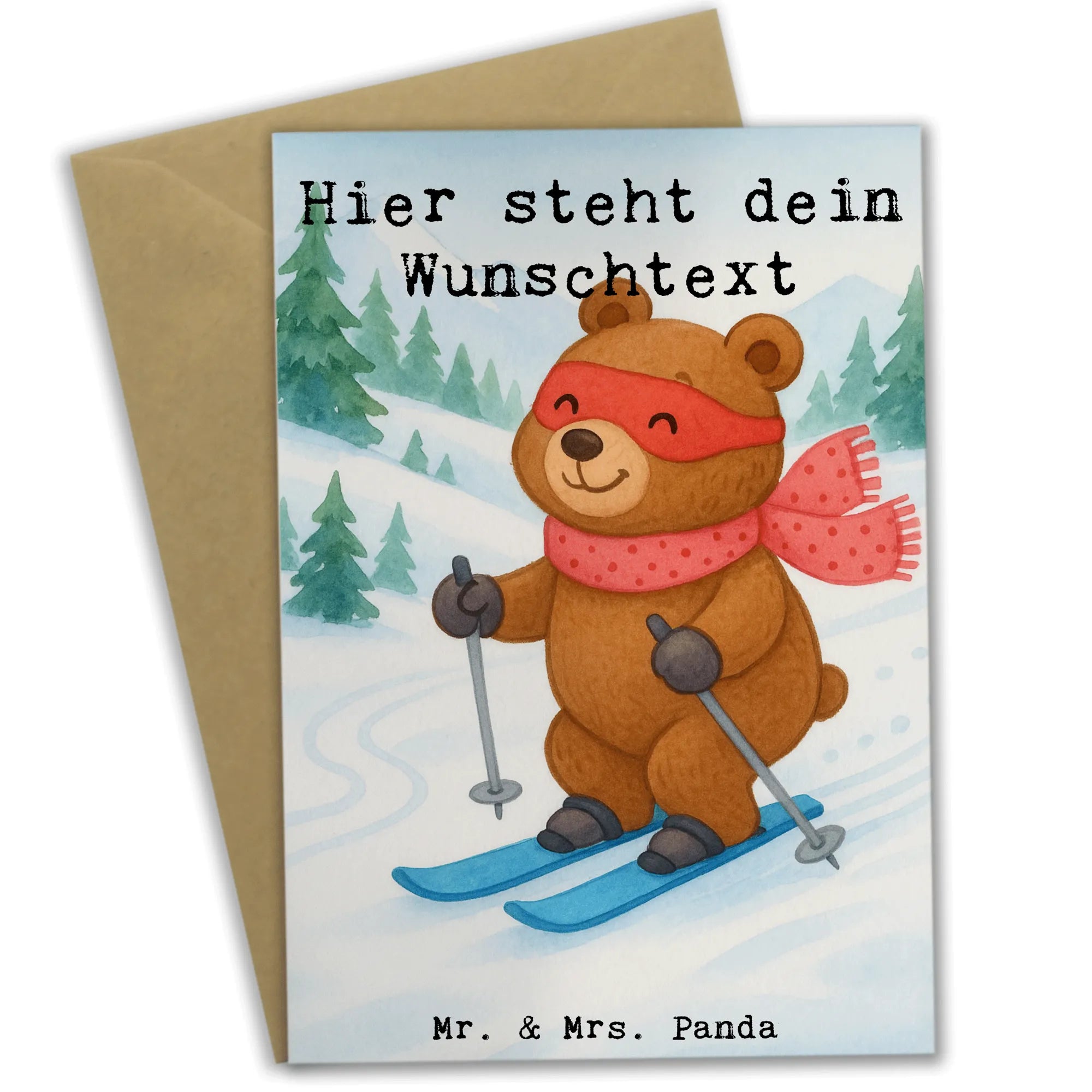 Personalisierte Grußkarte Hase Skifahren Design