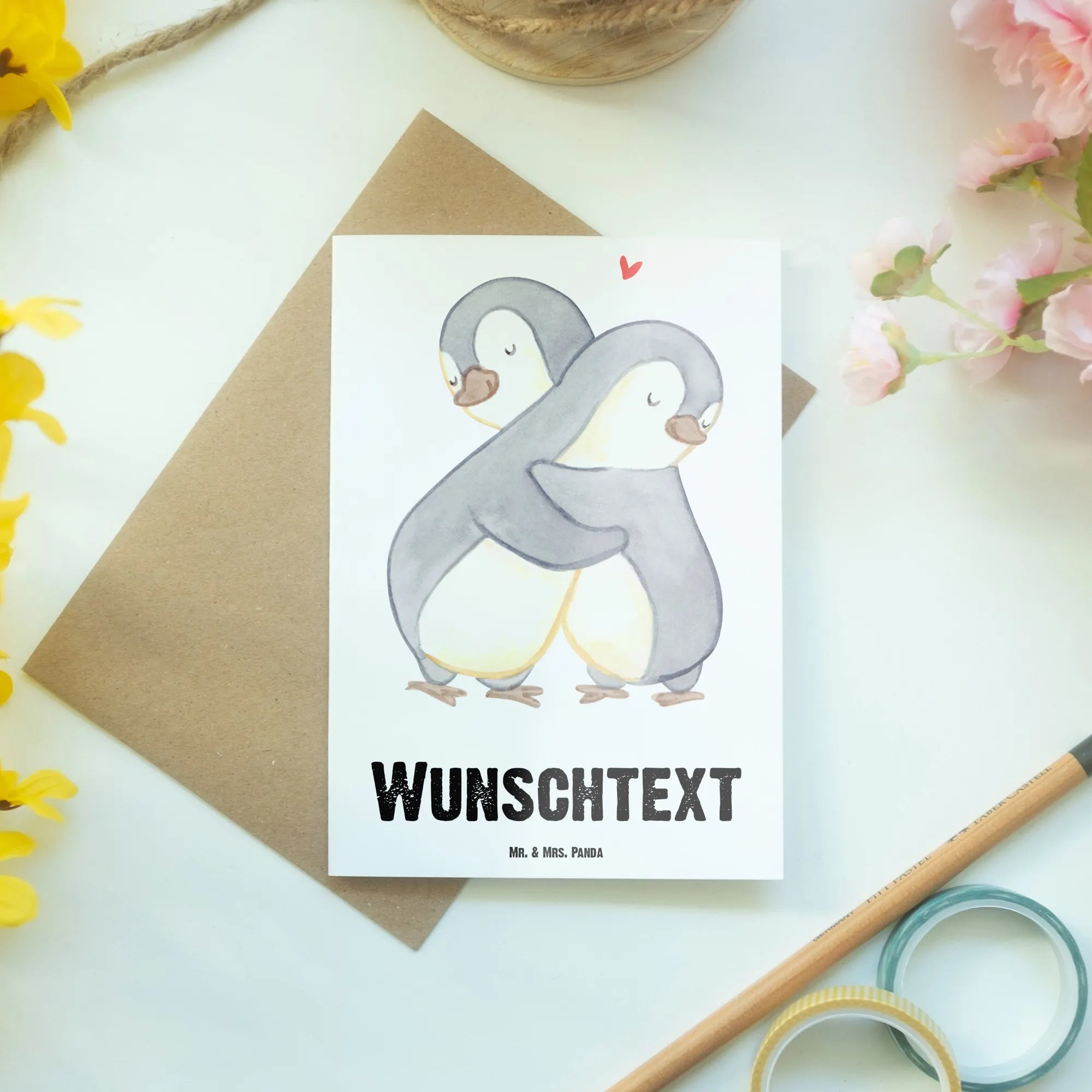 Du suchst das perfekte Geschenk für deine Geschwister? Dann ist die personalisierte Grußkarte "Beste Geschwister der Welt" von Mr. & Mrs. Panda genau das Richtige für dich! Diese einzigartige Karte wird nicht nur durch ihr liebevolles Design, sondern auch durch ihre persönliche Note zu etwas ganz Besonderem. Der niedliche Pinguin-Motiv, das zwei süße Pinguine zeigt, die sich im Arm halten, bringt sofort ein Lächeln auf die Lippen. Mit dem Slogan "Beste Geschwister der Welt" wird deine Zuneigung in jeder Hinsicht deutlich.