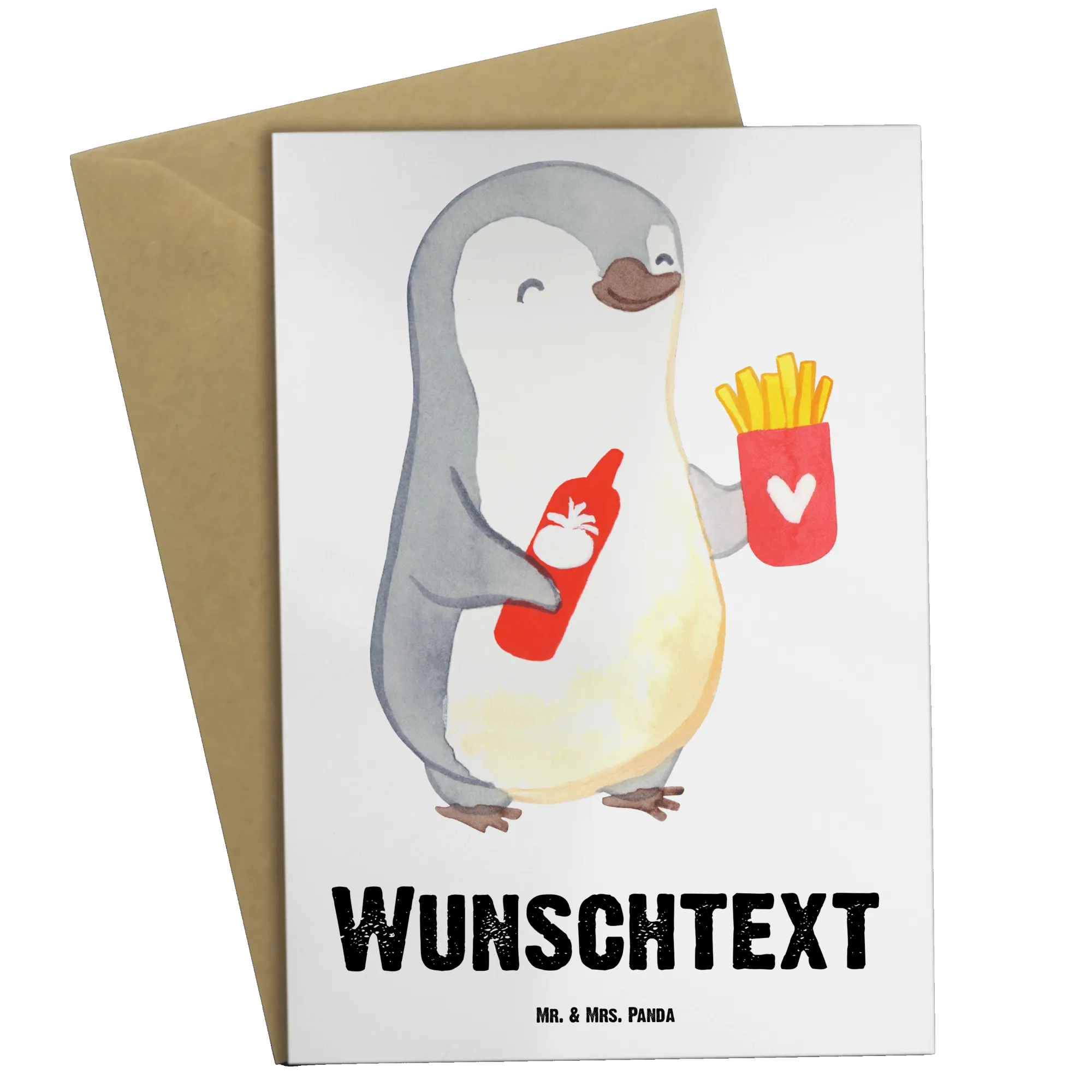 Personalisierte Grußkarte Pinguin Pommes