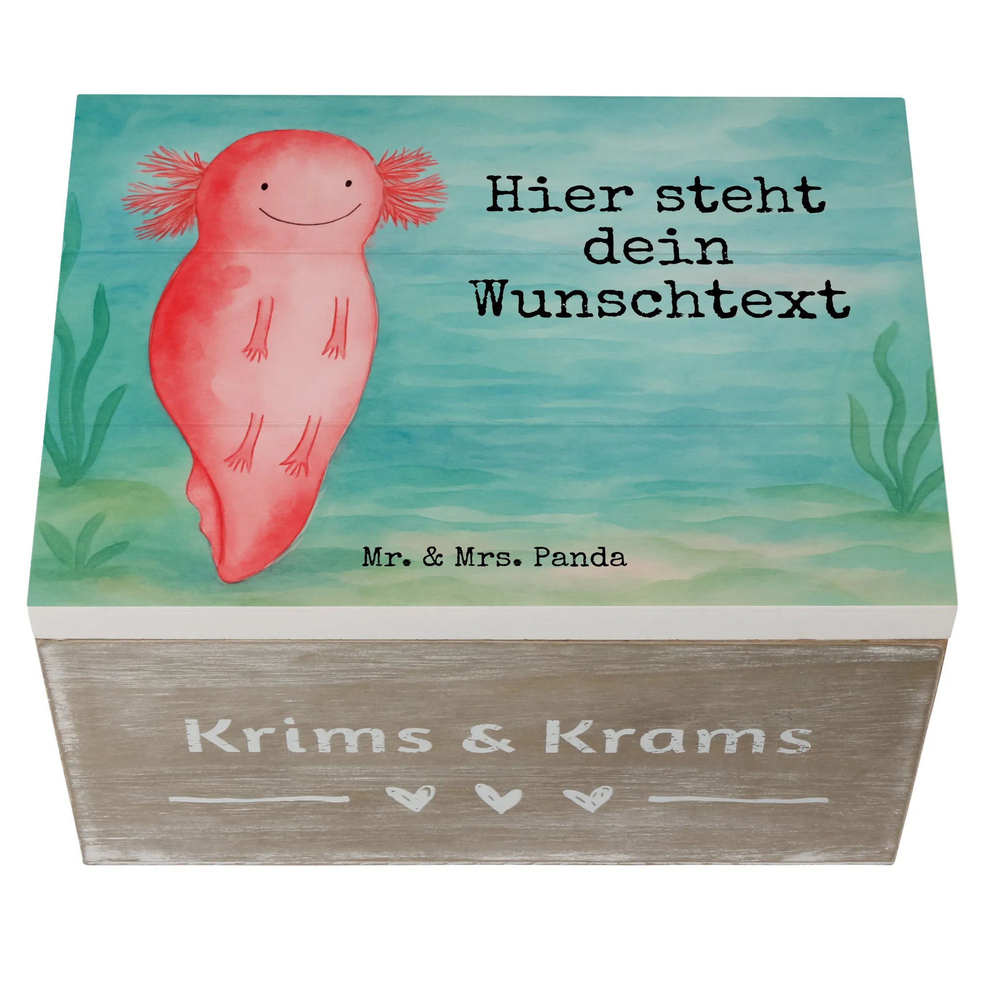 Personalisierte Holzkiste Axolotl Liebe Design - 22 x 15 cm