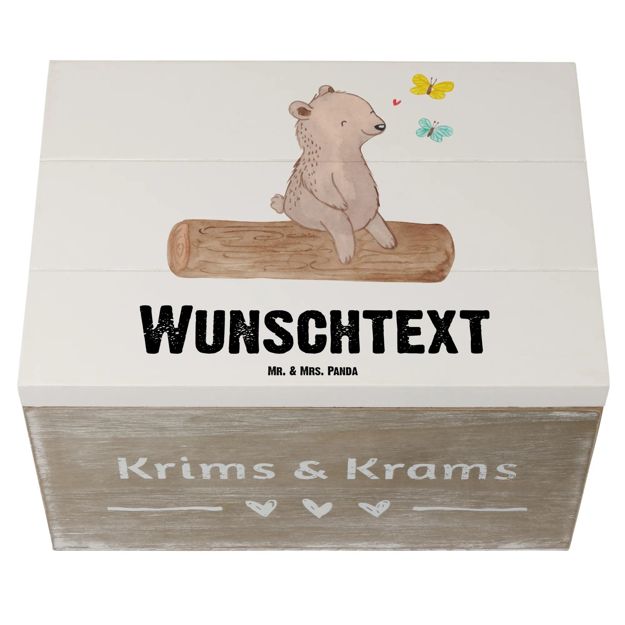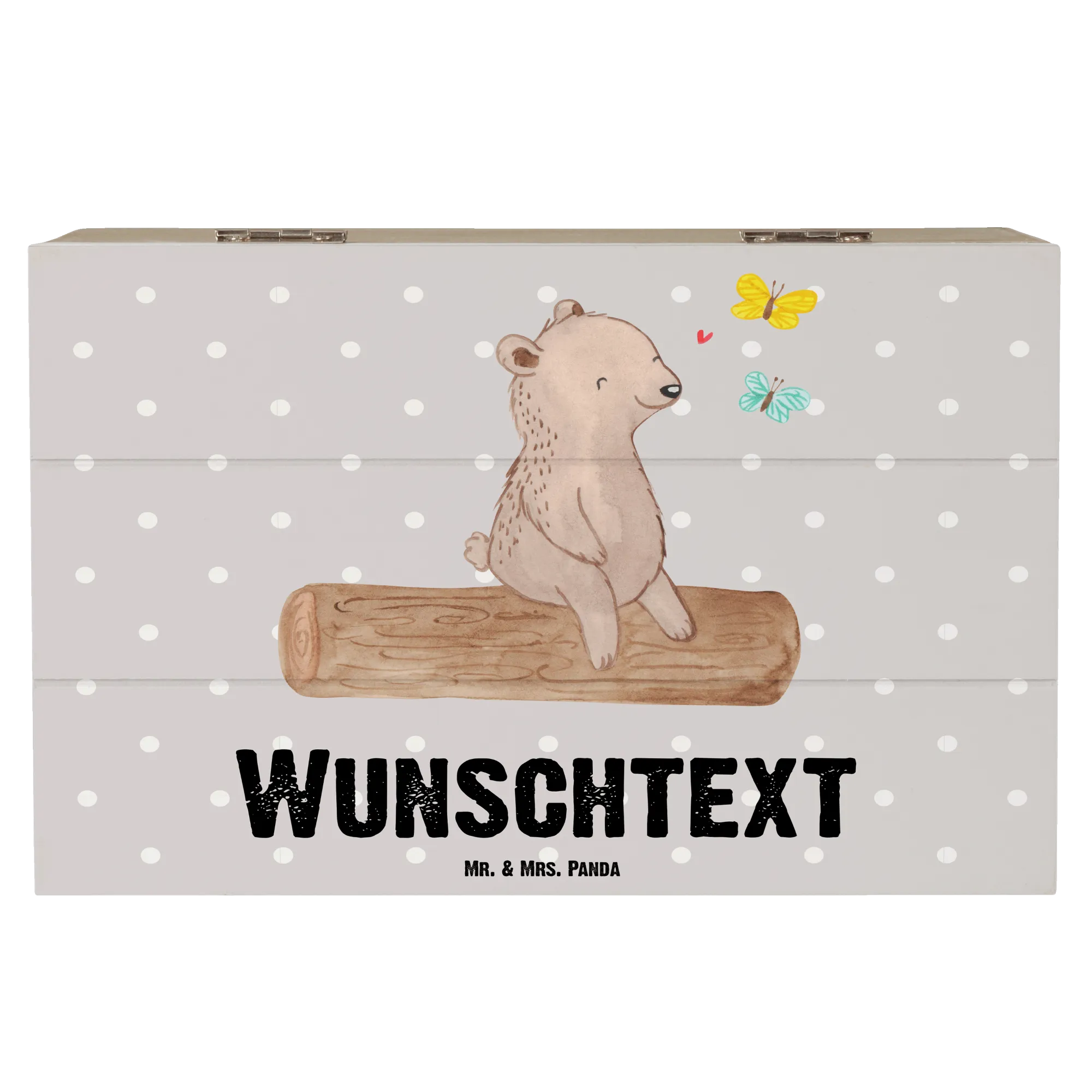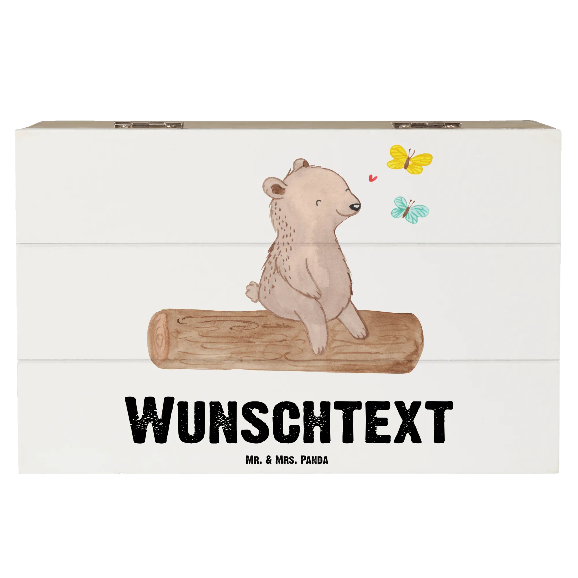 Entdecke unsere wunderschöne personalisierte Holzkiste mit dem zauberhaften Motiv "Bär Naturliebhaber Tage" von Mr. & Mrs. Panda! 🐻