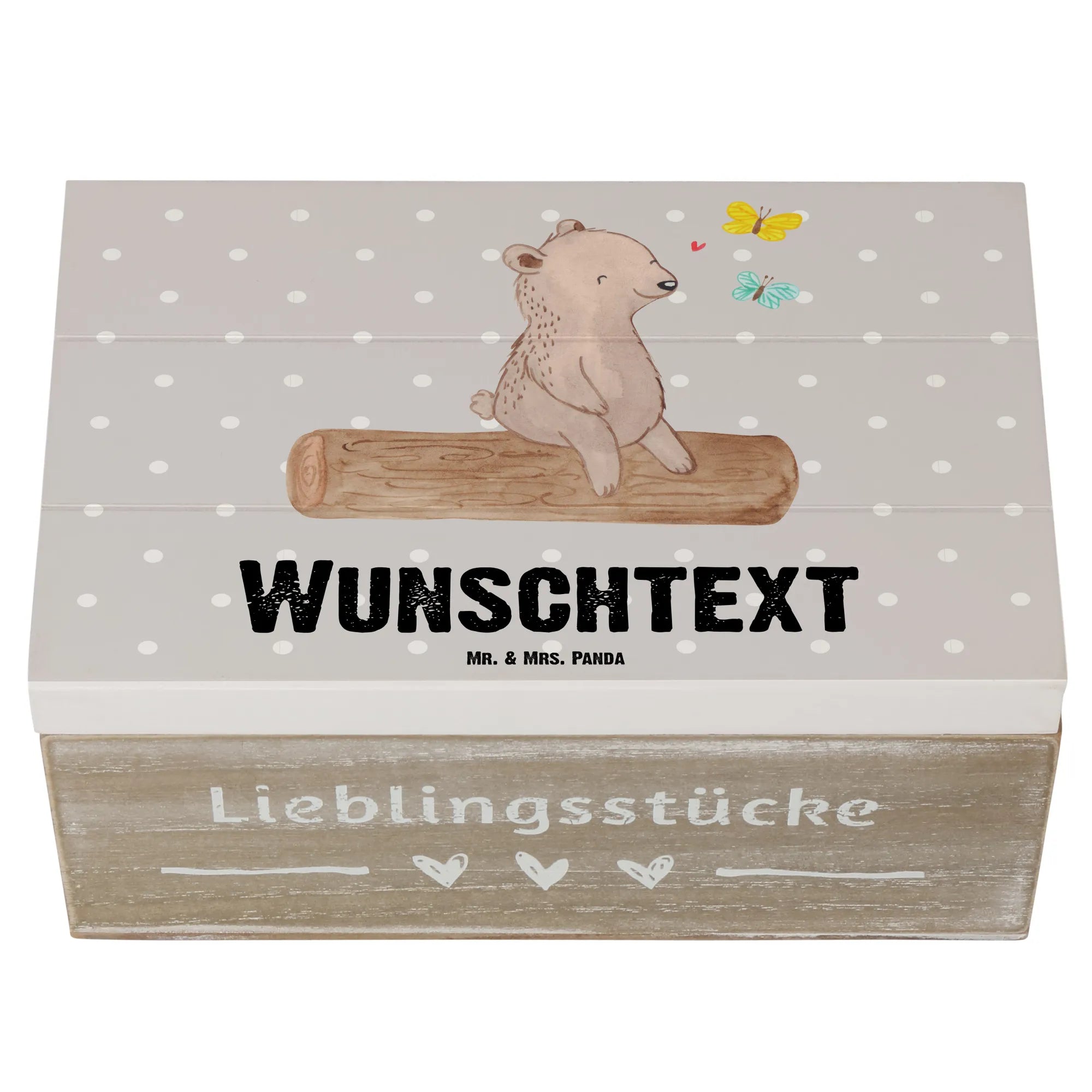 Entdecke die perfekte Geschenkidee für Naturliebhaber mit unserer personalisierten Holzkiste "Bär Naturliebhaber Tage" von Mr. & Mrs. Panda. Diese wunderschöne Holzkiste, die mit einem süßen Bärenmotiv verziert ist, bietet Platz für all deine wertvollen Schätze und Erinnerungen.