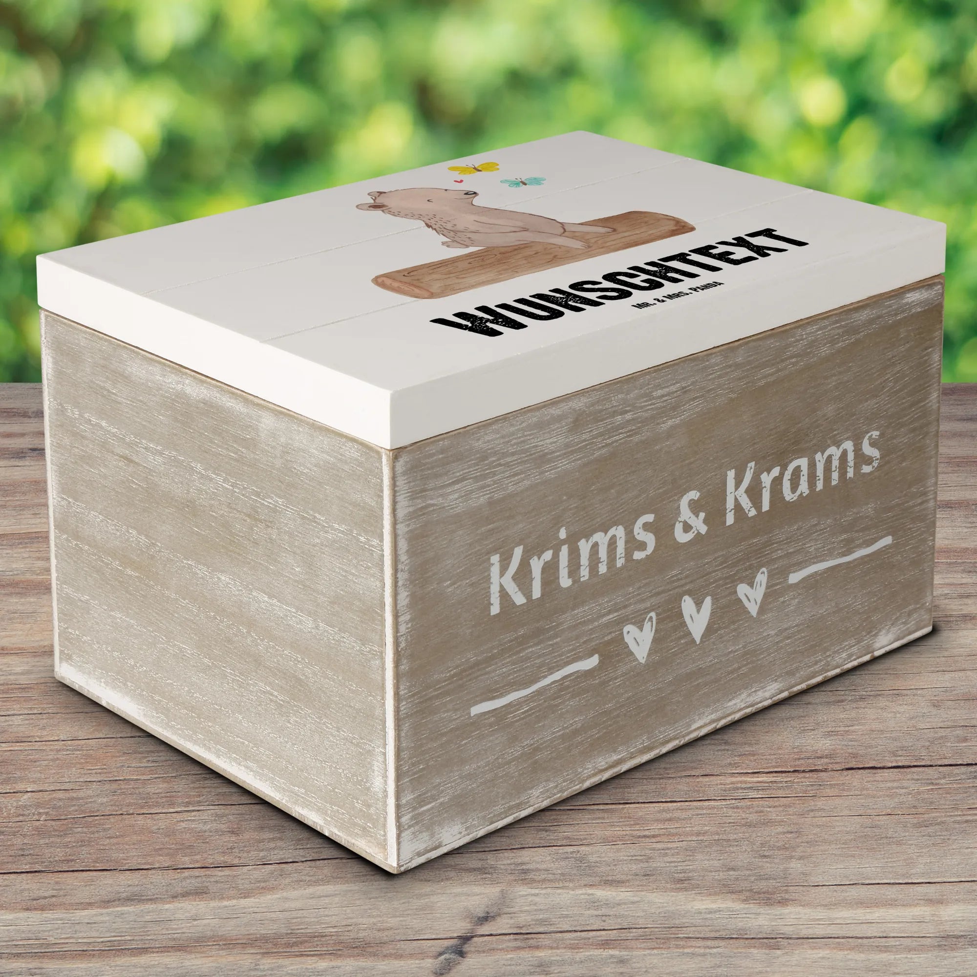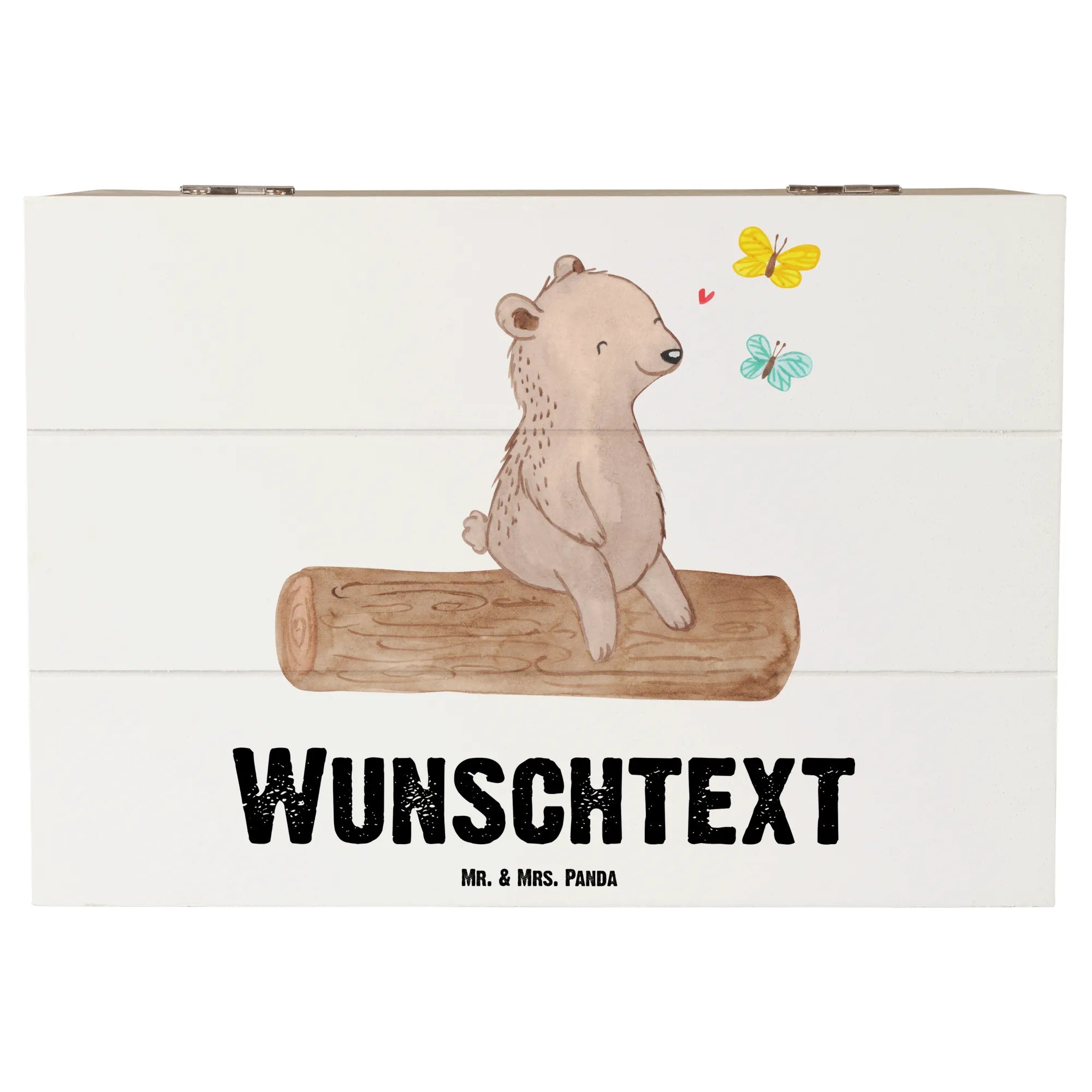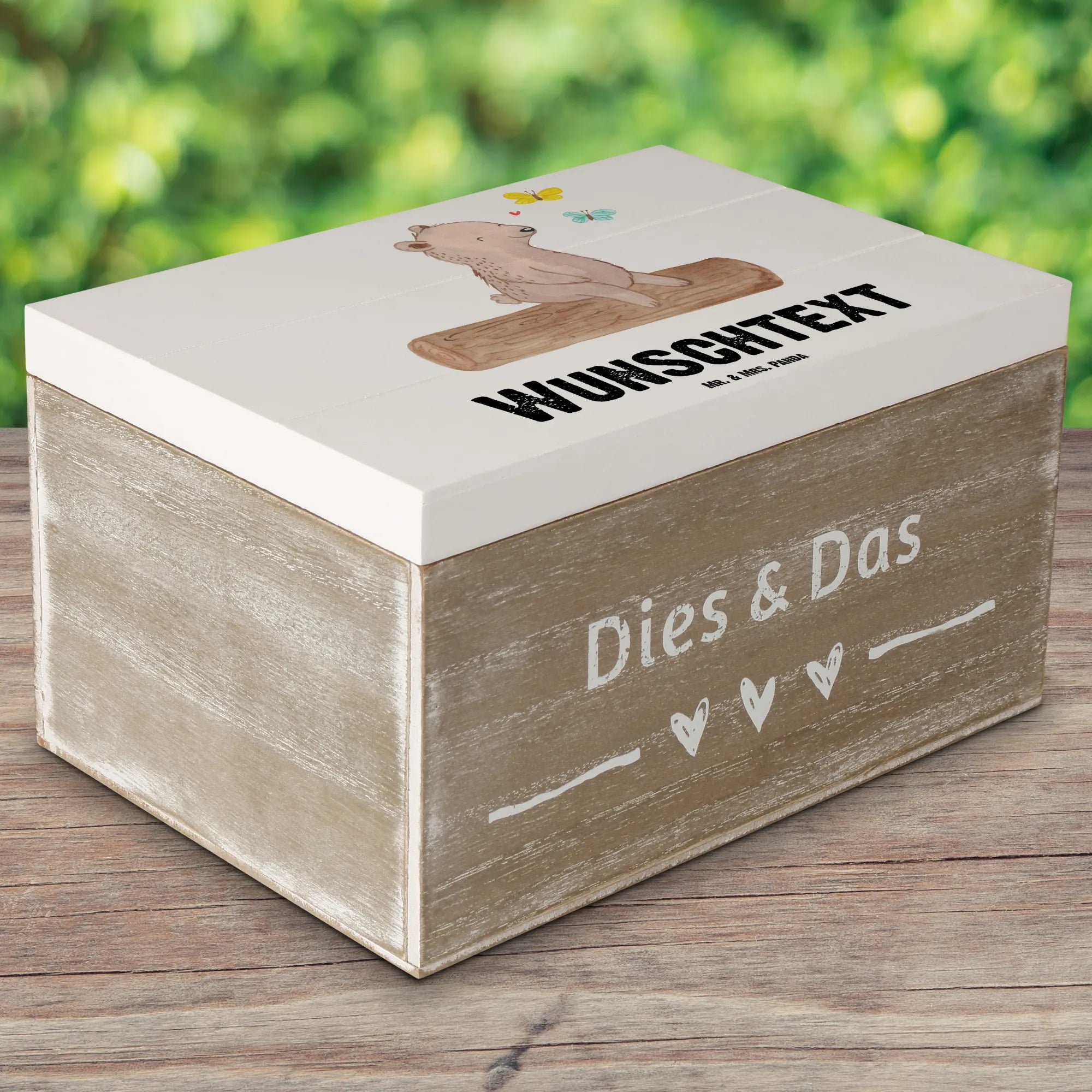 Die personalisierte Holzkiste 'Bär Naturliebhaber Tage' von Mr. & Mrs. Panda ist der perfekte Begleiter für alle Naturliebhaber! Diese außergewöhnliche Holzkiste, gefertigt aus hochwertiger, stabiler Holzfaser, bietet nicht nur einen idealen Ort zur Aufbewahrung von Schätzen, sondern auch ein ganz spezielles Design. Auf der Kiste prangt ein süßer Bär, der friedlich auf einem Baumstamm sitzt und den Schmetterlingen zusieht, während sie durch die Luft tanzen.