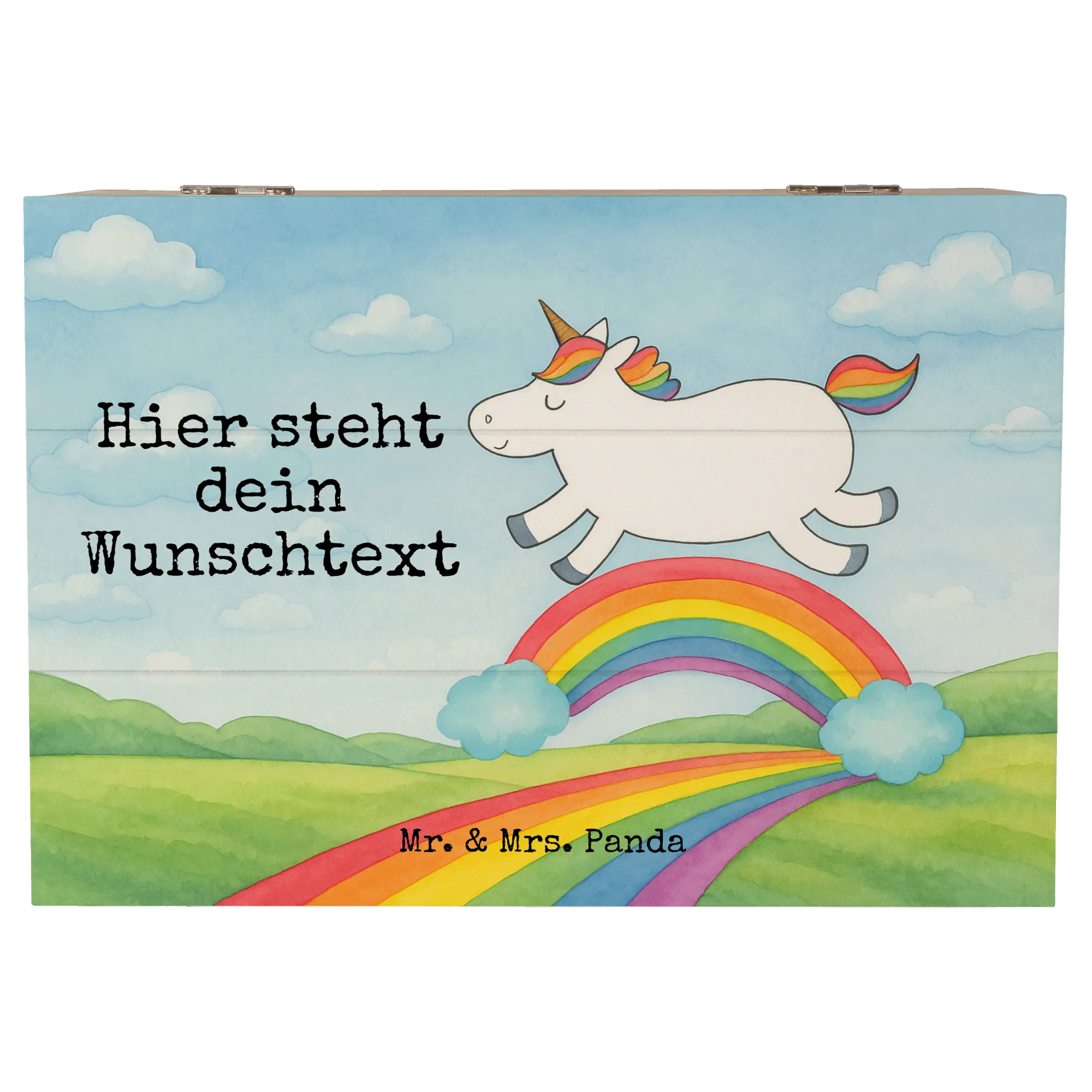 Personalisierte Holzkiste Einhorn Regenbogen Design - 22 x 15 cm