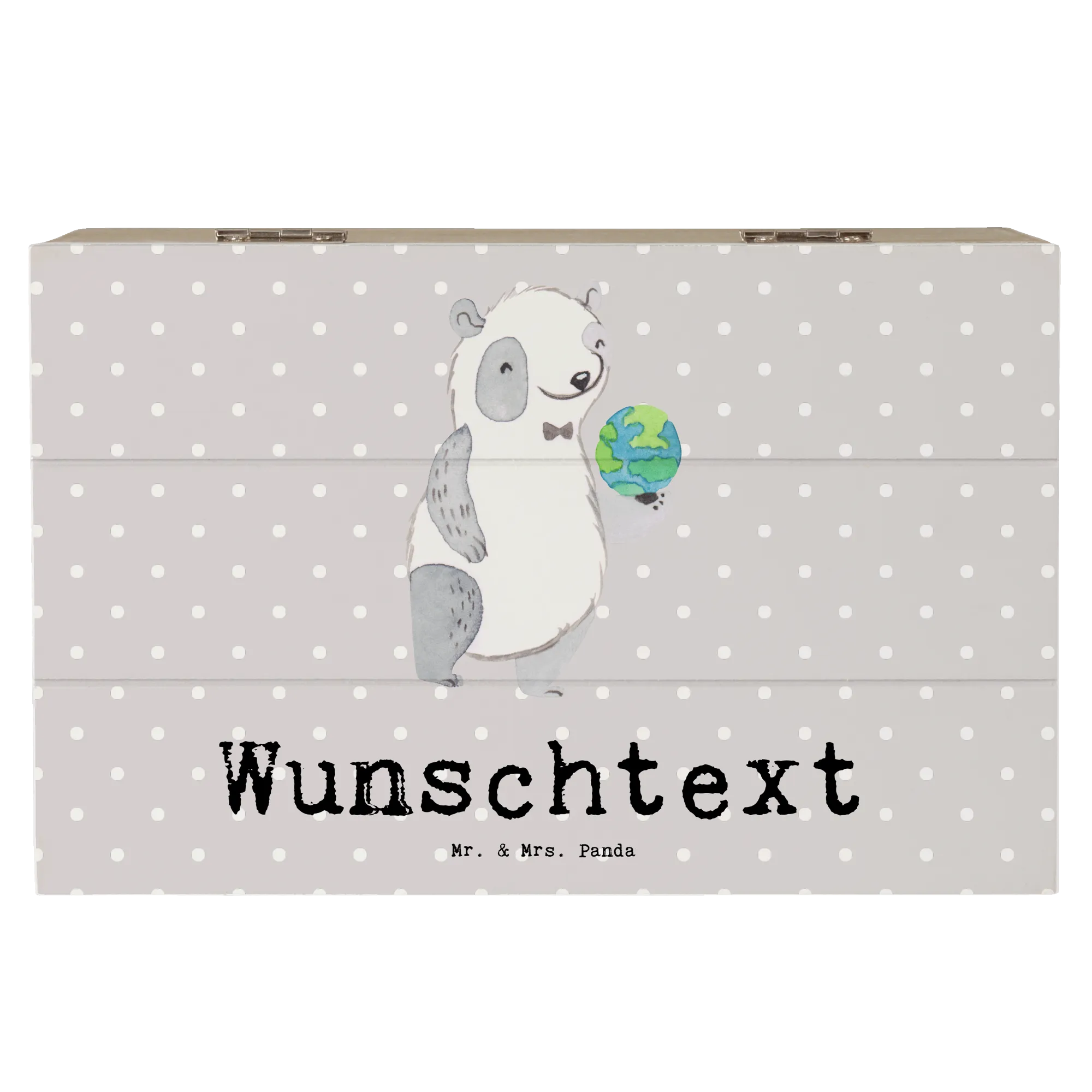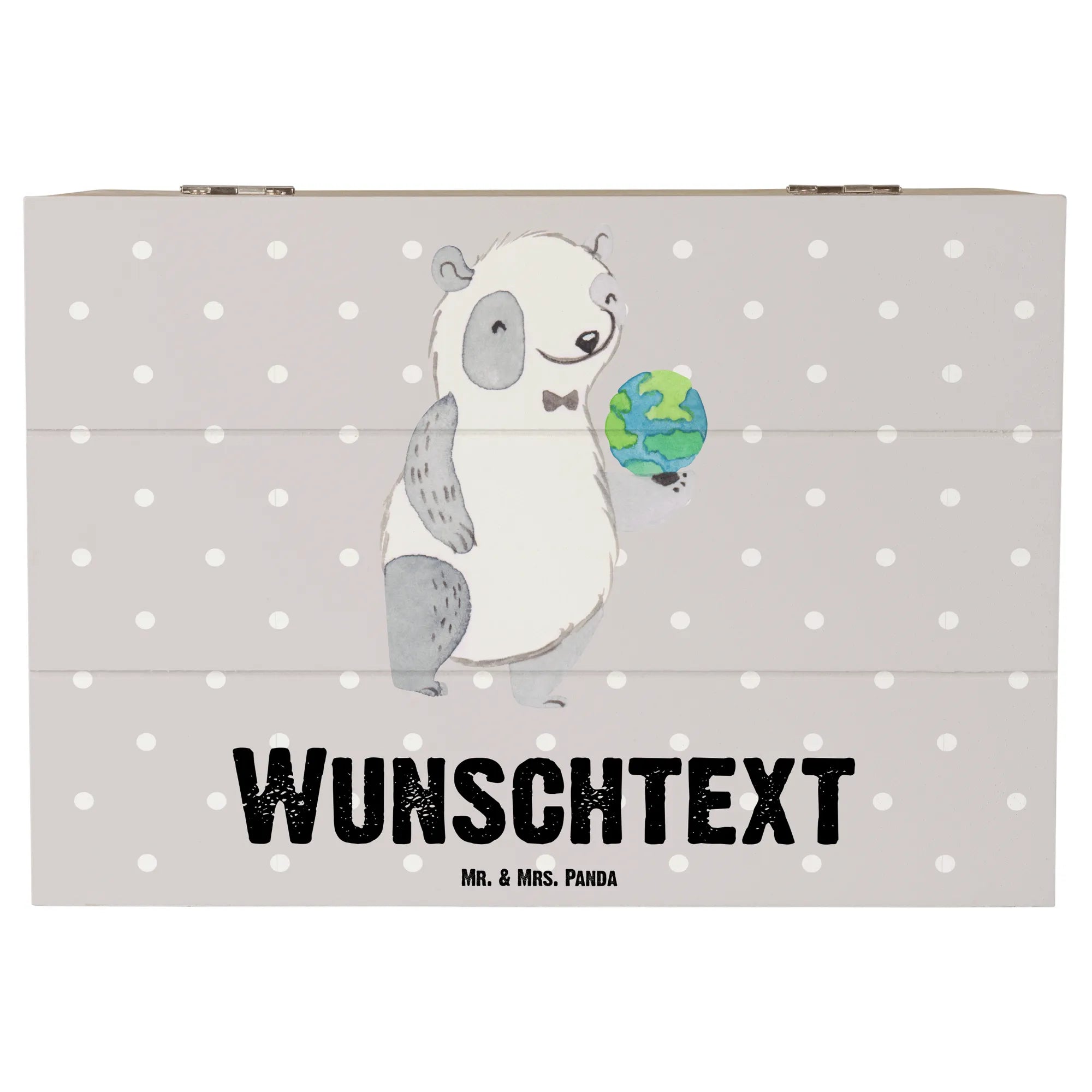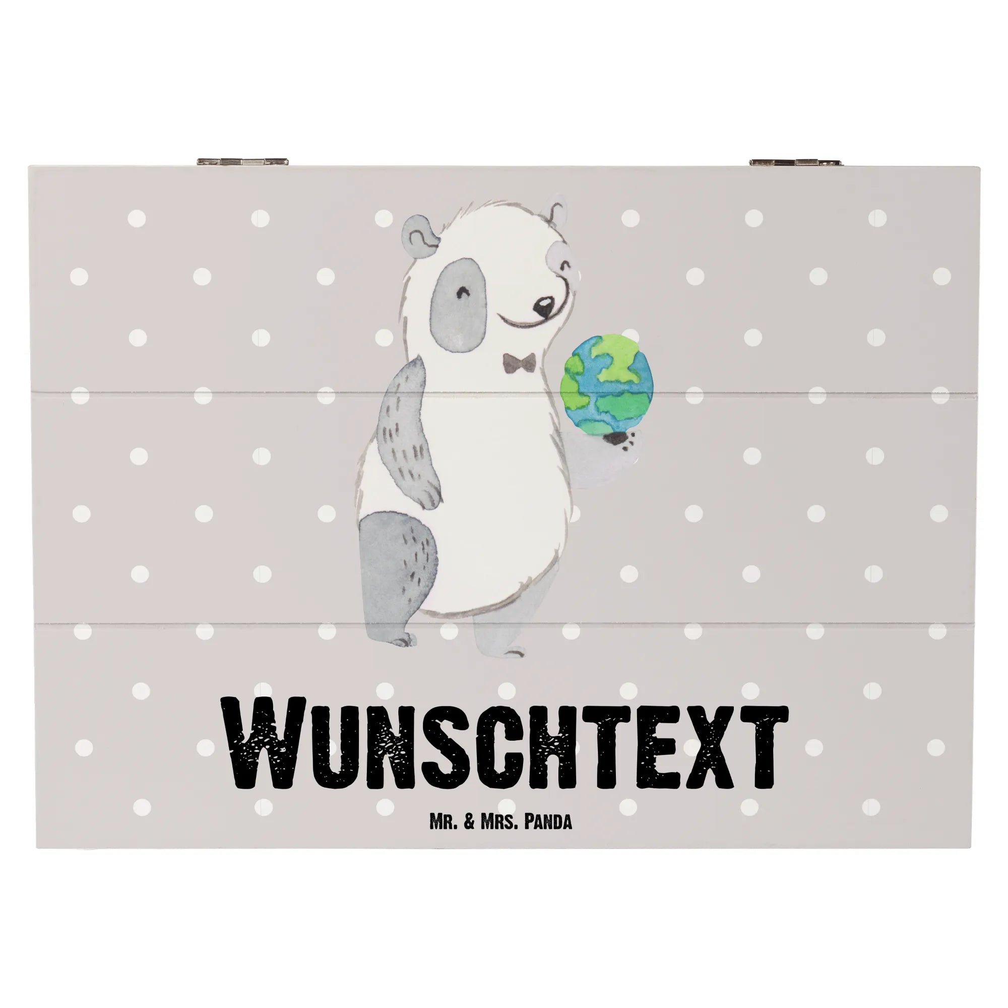 Der niedliche Panda, der die Weltkugel in seinen Händen hält, bringt ein Lächeln in Dein Zuhause. Die Möglichkeit, die Kiste mit Deinem Wunschnamen zu personalisieren, macht dieses Geschenk einzigartig und unvergesslich! Du kannst die Kiste für Fotos, kleine Andenken und gemütliche Erinnerungen nutzen.